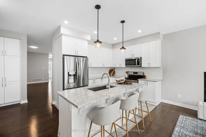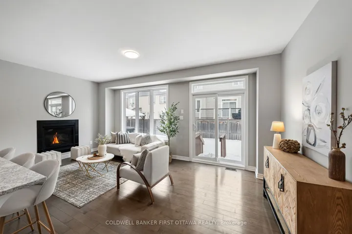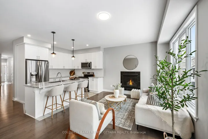 +"PublicRemarks": "Impeccably maintained and beautifully presented, this four-bedroom, three-bath semi-detached home offers a generous and thoughtfully designed layout ideal for modern family living. The main level features an inviting formal living and dining area, complemented by an expansive kitchen appointed with stone countertops, a breakfast bar, and abundant cabinetry. The adjoining family room, complete with a cozy fireplace, provides a warm and comfortable vantage point over the private rear yard.A graceful, curved staircase leads to the second level, where you'll find four well-proportioned bedrooms. The primary suite serves as a true retreat, showcasing a spacious walk-in closet and a luxurious four-piece ensuite.The finished lower level extends the home's versatility, offering an excellent space for a home office, recreation room, or additional family living.Situated in one of Stittsville's most desirable neighbourhoods, this property enjoys close proximity to schools, numerous parks, vibrant local shops and eateries, and convenient access to Kanata's retail and entertainment districts. A superb blend of comfort, style, and location."