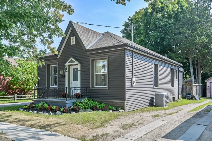 +"PublicRemarks": "Beautifully updated bungalow with detached garage and fully fenced yard in quiet area of town - close to all amenities. Updated exterior siding creates great curb appeal for this 3 potentially 4 bedroom 1135sq ft home. Open concept living/kitchen/dining area, brand new premium vinyl/laminate floors, updated 4 piece bath, additional space at the back of the house which features a full laundry room, and a den/office/bedroom and walk out to the large rear deck. High ceilings through out the house, and lots of closets including a walk in closet in the master bedroom. Stairway to full basement - currently used for storage and to house the mechanicals of the house including newer natural gas forced air furnace with central air, 100 amp electrical on breakers, new PVC plumbing, new windows in the basement. Vinyl windows through-out the house, and asphalt shingles are 10 years old. Bonus detached outbuilding with charming side covered porch has room for one car, or is an awesome man cave/workshop. Nice private yard with mature trees - good space for the pets or the kids! Flexible closing - move in ready!"