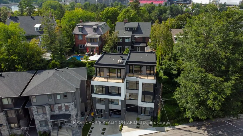 +"PublicRemarks": "WOW! BRAND NEW BUILD in 2023. Stunning Architecturally Modern Designed home located in the popular and highly desired neighbourhood of Old Ottawa South and Rideau Gardens. Close to the Historic Rideau Canal, Glebe, Rideau River, nearby Bank St. and Billings Bridge shopping, recreational, and running/walking/biking trails. Designed by Renowned Architect BARRY HOBIN this very large multi level semi-detached is beautifully appointed thru-out. 3 bedrooms, 3 bathrooms. Gorgeous striking staircase & railing. Custom kitchen with hi-end s/s appl., gas stove, quartz counters, pantry, seated counter area, 9 ft ceilings, very large windows, tiled and engineered hardwood throughout. Gas fireplace. Primary bedroom is a full floor w/ amazing private south facing terrace/balcony, built in custom closet, & large ensuite w/ oversized glass shower, soaker tub, & double sinks. Heated bath floors. Stamped concrete driveway & oversized garage fits any vehicle. Low maintenance fully decked/fenced rear yard. (could be grassed if desired) Four level including entry. Call now to view property."