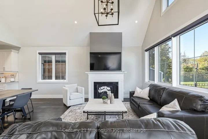 +"PublicRemarks": "Exceptional Beckwith Model in the sought-after community of Windfall - designed for those who value privacy, sophistication, and a four-season lifestyle. Set on an extra-deep premium lot with unobstructed views of Blue Mountain, this executive residence offers refined comfort inside and elevated outdoor living beyond. The professionally designed backyard features a full outdoor kitchen with natural gas BBQ, hot tub, and patio heater - ideal for hosting clients, colleagues, or relaxed evenings under the stars. Inside, soaring vaulted ceilings frame a dramatic great room anchored by a gas fireplace and expansive windows overlooking the mountain. The chef's kitchen is both functional and impressive, with stone countertops, high-end appliances, and generous prep space - flowing effortlessly into a spacious dining area made for memorable gatherings. The main-floor primary suite offers convenience, complete with a spa-inspired ensuite featuring double vanities and a glass shower. Four additional bedrooms and four full baths provide flexibility for visiting family, or a dedicated home office setup. Fully furnished with curated designer pieces, this home is move-in ready for an annual lease - allowing you to embrace the lifestyle without the distraction of setup. Bedrooms offer a king, queen, queen, three singles, and a pull-out full sofa in the main floor office/den. Located just moments from hiking and biking trails, golf, and the shops and restaurants of Blue Mountain Village, the address delivers both tranquility and access. Residents of Windfall also enjoy exclusive use of The Shed - a private amenity centre featuring a year-round heated outdoor pool, hot tub, fitness facility, sauna, and gathering space. Hot tub servicing is negotiated separately from the monthly lease."