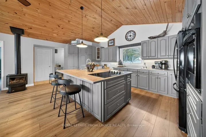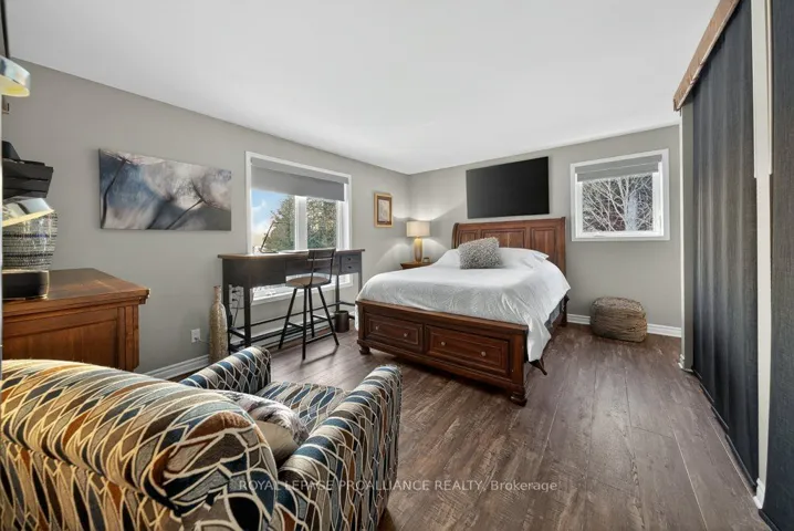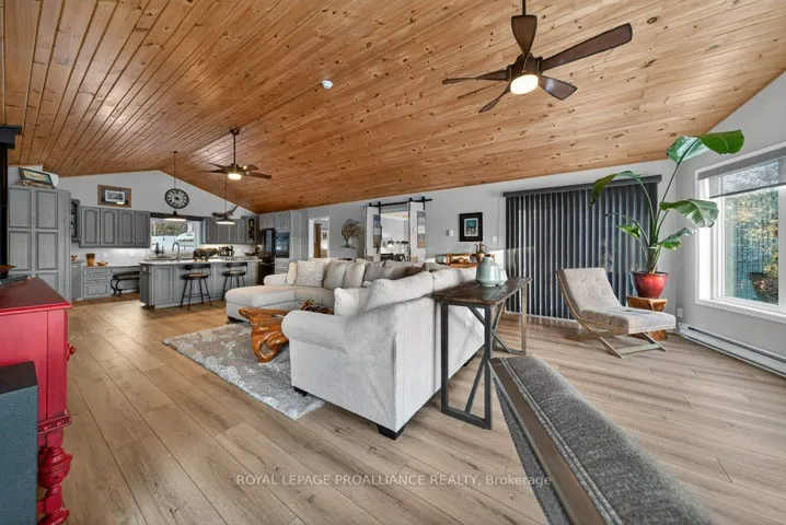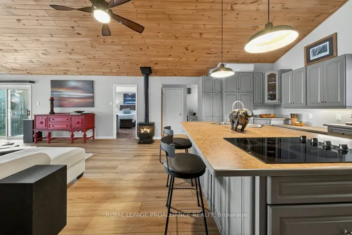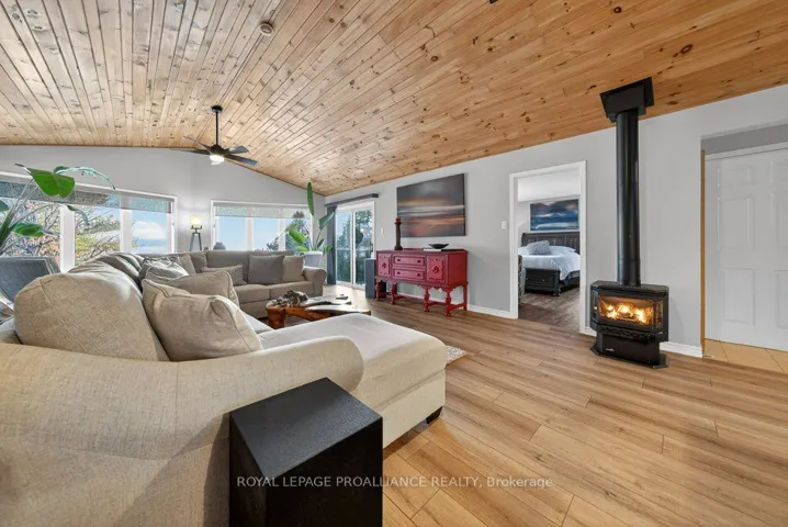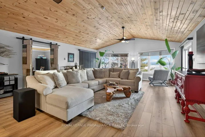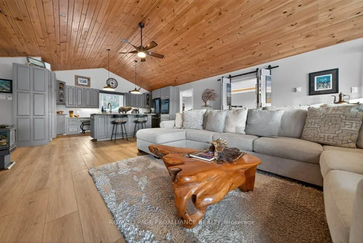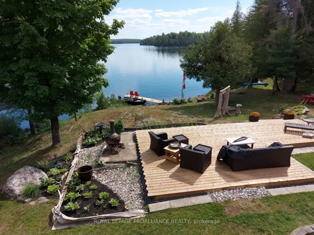 +"PublicRemarks": "Experience the pinnacle of refined recreational living on this private 8.2-acre peninsula, boasting an extraordinary 548 feet of pristine waterfront. This meticulously curated waterfront residence seamlessly blends rugged natural beauty with tastefully curated interior upgrades, offering a turnkey sanctuary designed for the modern era.The heart of the home features an expansive open-concept kitchen and a glorious vaulted ceiling living room, where wall-to-wall views frame the daily masterpiece of the sunset. Step across engineered hardwood floors to find a residence built for ease, featuring custom power blinds, signature double-bifold barn doors, and a wellness-focused climate system powered by two new heat pumps (2026). The layout flows effortlessly with entry foyer, open concept living room with fireplace and walk- out to two lakefront decks, custom designed kitchen with centre island, new appliances; 2 bedrooms on the main level including primary bedroom & 4pce ensuite with laundry, a separate dining room with cove molding w/back light, electric fireplace and lakefront views, a lower level 519 sq. ft. recreation and games room-complete with pool and ping-pong tables, 2 additional bedrooms, and 3 pce bathroom, lake front walk out and large storage & utility rooms - perfect for hosting at scale.The transition to the outdoors is impeccable. Expansive decking with wide stairs leading to landscaped gardens to a new dock and swim platform at the lake. For the hobbyist, the oversized 700 sq. ft. detached garage is a standout feature, offering a workshop and ample space for a car collection or all-terrain vehicles.Whether you are exploring private trails, gathering at the waterfront fire pit, or enjoying the breeze from the Global Dec-K-ing balconies, this resilient property offers a "purpose-driven" lifestyle that is increasingly rare. Extra Special !!! - As there is potential for 3acre severance for a family compound, maintaining privacy for all!!!"