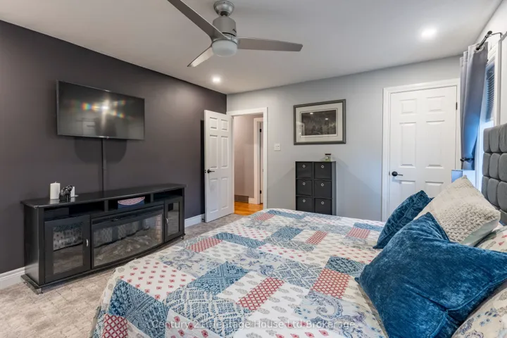 +"PublicRemarks": "GORGEOUS BRICK BUNGALOW IN A DESIRABLE LOCATION! Charming and spacious family home, set on a large 100 FT x 150 FT lot with mature trees in the sought after Woodland neighborhood offering convenient access to Hwy 19 for commuters. Thoughtfully maintained and full of character, this home features a stunning primary suite with a luxurious walk-in closet and a renovated 3 pcs ensuite. The traditional kitchen and dining are are equipped with four Samsung appliance, an island ideal for food prep, and direct access to a bright 3 season sunroom and a multi-level deck perfect for entertaining. The cozy living room showcases a large picture window and a beautiful stone fireplace. Downstairs, the fully finished lower level offers even more living space with a family room and wet bar, a 4th bedroom, an exercise room, laundry area, 3 pcs bath, a hobby/workshop space, and ample storage. A convenient rear staircase provides direct access to the oversized and impressive double garage. Plenty of room for your vehicles and toys. The expansive driveway fits up to 8 cars and even allows for access to the backyard for additional storage. Recent updates include; exterior doors, insulated garage doors, water softener, heat pump/furnace, owned hybrid water heater, updated en-suite bath, new siding, kitchen cabinets with hard surface countertops. This is an exceptional family home and must be seen."