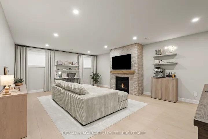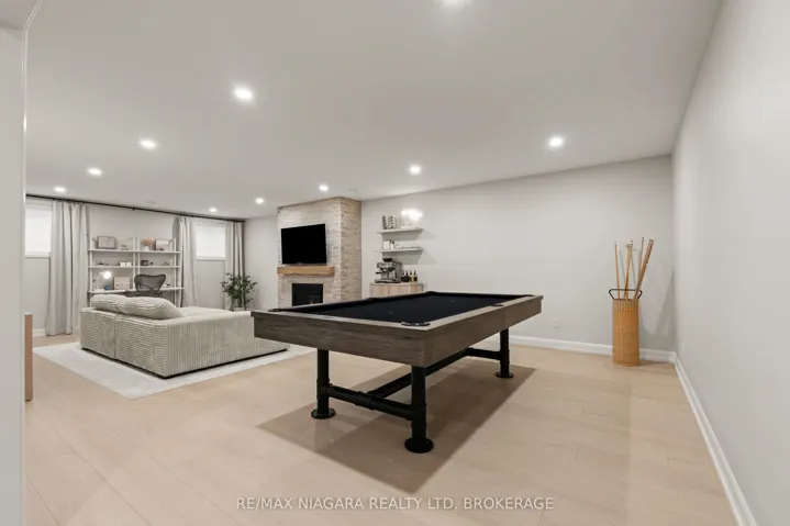 +"PublicRemarks": "Welcome to a masterclass in luxury. This custom bungalow by award-winning builder sits on an expansive 81.7ft x114ft lot fully fenced featuring a tranquil creek. Located in Ridgeway's prestigious Thunder Bay, you are steps from Lake Erie. The exterior impresses with Lafitt stone, James Hardie siding, and metal roof accents.Inside, discover a home with $250,000 in recent upgrades. The grand interior features soaring 16-foot ceilings in the main living space, 9' main floor ceilings elsewhere, 8' solid core doors, and new high-end flooring throughout. Stained timber beams add warmth to the vaulted architecture. The Chef's kitchen is reimagined with new quartz, designer fixtures, and premium Fisher & Paykel appliances. It is elevated by ceiling-height cabinetry, a walk-in pantry with custom metal/glass doors, and a massive breakfast bar. Sliding doors lead to a 28'x10' covered deck overlooking a fenced, private yard with serene views of the creek and professional landscaping.The primary suite is a sanctuary with a custom walk-in closet and a spa-like glass-tiled ensuite. High-end finishes extend to every corner: the laundry features Electrolux appliances, while the two-car garage boasts polyaspartic floors and custom cabinetry. A stunning oak waterfall staircase with glass railings leads to a finished basement, offering a massive rec room with a gas fireplace, two additional bedrooms, and a 4-piece bath-the perfect guest retreat.Beyond the new driveway pavers and sleek 3-way fireplace, enjoy unparalleled convenience. You are a 10-minute walk to Downtown Ridgeway's shops and restaurants, and a 2-minute drive to Crystal Beach. With a state-of-the-art Carrier HVAC system and smart Ecobee thermostat, this modern masterpiece is move-in ready."