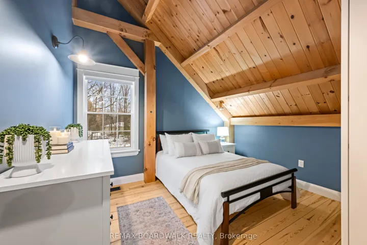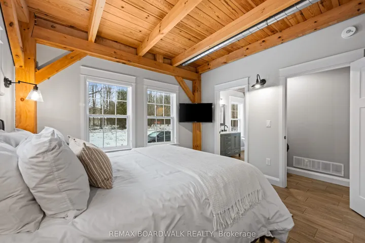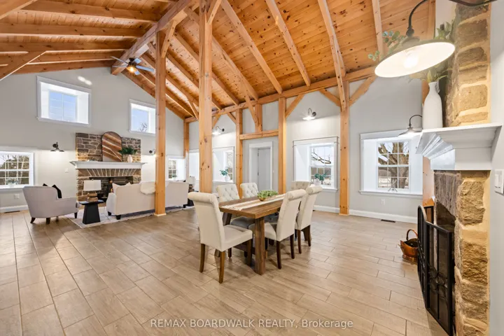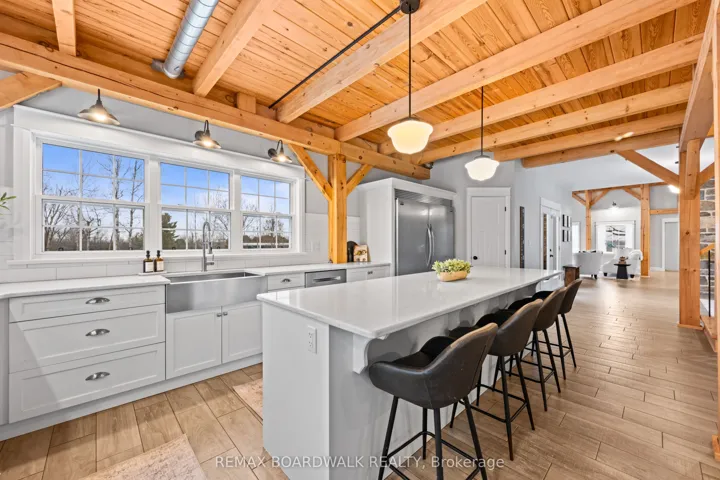 +"PublicRemarks": "Set amid 41 picturesque acres of rolling pasture and mature trees, this beautifully restored 1848 stone home is a rare offering that seamlessly blends historic charm with refined modern living. Lovingly built using original stone & completed in 2018, the home showcases timeless craftsmanship and a warm, inviting atmosphere that is truly one of a kind.The land offers privacy, beauty, and versatility-ideal for hobby farming, equestrian use, recreation, or simply enjoying the serenity of nature. Remarkably convenient, with easy access to Highways 401 and 416 and an approximate 50-minute commute to the Kanata Tech Park, making this an exceptional option for those seeking country living without sacrificing connectivity.Spacious farmhouse kitchen, complete with a walk-in pantry and sweeping views of the surrounding countryside.Septic system (2015, cert on file), drilled well (2016), forced air furnace (2017), central air (2017), Jøtul wood stove (2020, WETT certified). The interior features vaulted ceilings, exposed beams, hemlock flooring, recessed windows & metal roof.Offering 5 bedrooms and 3 bathrooms, including a generous primary suite with a 5-piece ensuite and soaker tub, upper-level laundry, and a finished basement providing flexible additional living space.An impressive 60' x 40' barn/garage built in 2023, designed for exceptional versatility. Features a poured concrete foundation, metal roof, insulated doors, and a 200-amp electrical panel, it is currently configured to accommodate up to 7 vehicles, with endless potential for workshop or farm use.Rich in character, offering historic elegance, modern comfort, expansive land, and outstanding commuter access. A rare opportunity to own a standout country estate that is as practical as it is beautiful."