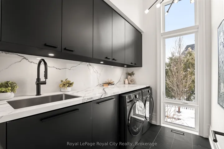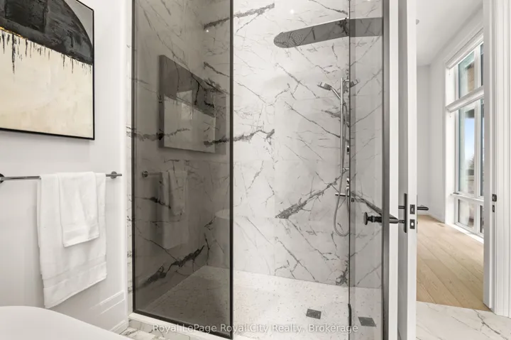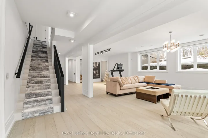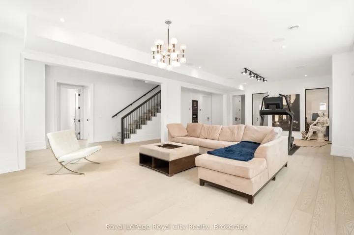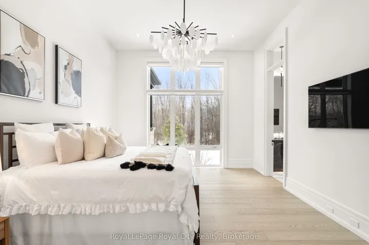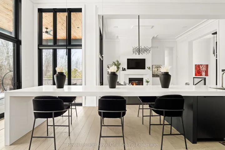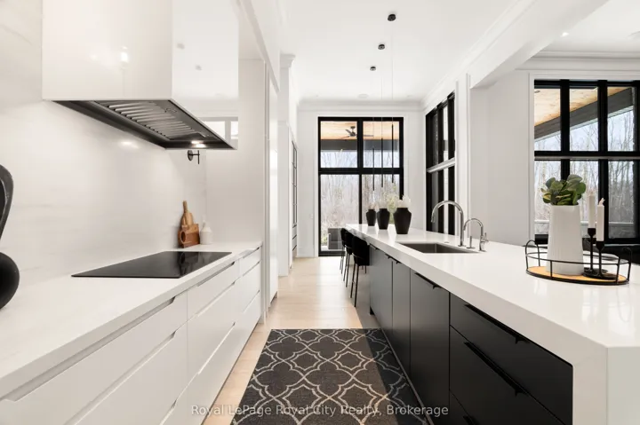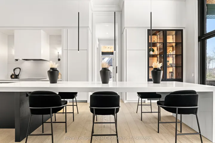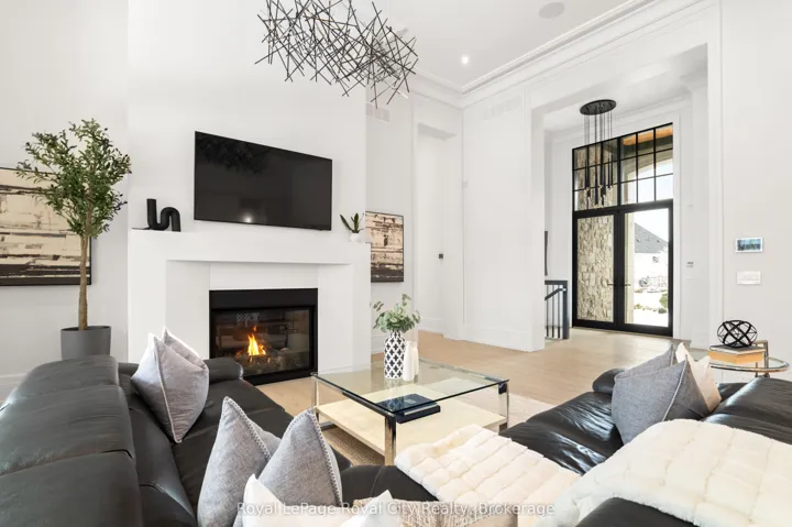 +"PublicRemarks": "Welcome to life inside Heritage Lake Estates - a private, gated enclave in Puslinch known for its mature surroundings and beautiful custom homes. Set on a premium half-acre pie-shaped lot backing onto mature treelines, this custom stone bungalow offers privacy without compromise. With 2,252 square feet on the main floor and soaring 14-foot ceilings, the principal living space is defined by symmetry, scale, and natural light. A custom fireplace anchors the living room, while upgraded crown moulding and floor-to-ceiling windows create a refined yet inviting atmosphere.The kitchen and dining area are gallery-inspired in design, centred around a striking 21-foot stone waterfall island with seating for eight. Integrated cabinetry conceals premium WOLF appliances for a seamless aesthetic. Heated floors, custom lighting, and electric blinds reflect the many thoughtful upgrades woven throughout the home. Step outside to a covered back patio complete with built-in heaters and an impressive 350 sq ft gas fire feature, overlooking the fenced yard and tranquil forest backdrop - ideal for elevated, year-round outdoor living.The primary suite is a private retreat, offering 12ft ceilings, floor to ceiling windows, a generous walk-in closet and spa-inspired five-piece ensuite with Jet Spa shower system. Across from this, the well-appointed laundry room and additional main-floor bedroom, featuring with its own ensuite bath and walk-in closet, complete the main level. The fully finished lower level adds two bedrooms, each accompanied by an ensuite bathroom, a spacious recreation room with custom fireplace, dedicated office space, and a home gym - perfectly suited for growing families or multi-generational living. A functional mudroom with built-in cabinetry offers direct access to the heated three-car garage and walk-down access to the basement. 153 Heritage Lake Drive invites you to embrace a quiet kind of luxury, framed by the serenity of Puslinch Lake."