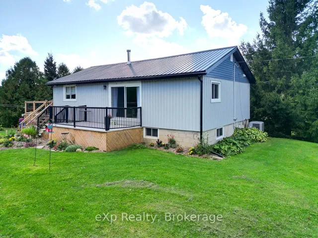 +"PublicRemarks": "Set on 65 acres, this property delivers space, privacy, and variety, with approximately 20 acres of workable land and established trails winding through maple, birch, cedar, and elm forest. The well-maintained 3-bedroom, 2-bath bungalow offers a comfortable, functional layout with room to live and grow. The living room opens through patio doors to a front porch that looks out over the sweeping lawn, while the bright eat-in kitchen connects directly to a large raised deck with long views across open fields and surrounding woods - ideal for outdoor meals, quiet mornings, or evening downtime.The finished basement expands the living space with a generous family room warmed by a wood stove, along with a two-piece bath, laundry area, and a roughed-in fourth bedroom that will be completed prior to close. Propane costs include fuel and tank rental: $884.34 for 2024 and $951.70 to October 8, 2025. With plenty of room to explore, play, or expand your vision, this property offers a rare blend of usable land and natural setting. Located just 15 minutes from Owen Sound or Wiarton and close to Francis and Bass Lakes, it's a solid option for anyone looking for space, fresh air, and long-term potential."