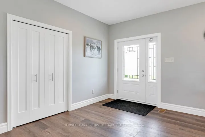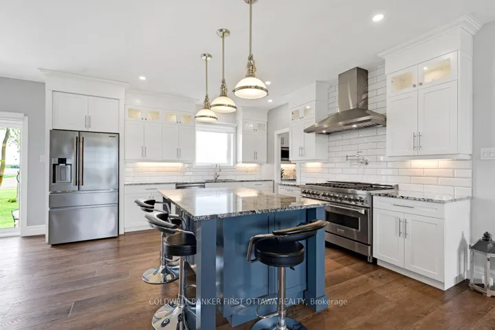 +"PublicRemarks": "New 2022 bungalow with upscale quality and curb appeal on 1.5 country acres, just outside the friendly village of Pakenham. Welcoming Trex verandah is first of many desired features this superior-built 3 bedroom, 2 full bathroom home offers. Sunny spacious open plan with 9' ceilings. Luxury vinyl plank floors flow thru main level. Livingroom showcases Nantucket Eldorado stone fireplace that has propane insert with big glass face and reflective back, creating mesmerizing fire. Custom Dell windows have wide sills due to thickness of upgraded insulated ICF walls. Dining area patio doors to patio. Kitchen sparkles with all its modern detailing including Alaska solid wood cabinets, under counter lighting, beveled subway backsplash and upper glass display cabinets with interior dimmer lights. You also have built-in charging station for electronics. The family chef will appreciate Zline propane stove with pot filler and electric double ovens plus, grand island-breakfast bar. Impressive Butler's pantry has granite counters, Alaskan cabinets, microwave nook and coffee station with pot filler. The spa primary suite retreat has large windows for peaceful country views; walk-in closet with tiered rods, cabinets and pot lights. The 5-pc ensuite's cabinets flank two-sink granite vanity; two-person soaker tub with floor mounted waterfall faucet; glass shower body spray & rain head. Two more bedrooms, 4-pc bathroom, laundry room and mud room. Lower level polished concrete floor in expansive family room and rec room plus, sliding barn door to exercise room. Lower level partly finished, awaiting your finishing plans. Hot water on demand. Hookup for a portable generator. Attached heated insulated 3-car has finished drywall and overhead propane heater; inside entry to both main and lower levels. Large vegetable garden. Bell high-speed. Cell service. On municipal maintained road with curbside garbage pickup and school bus route. 10 mins to Pakenham golf course & ski hill. 25 mins Kanata"