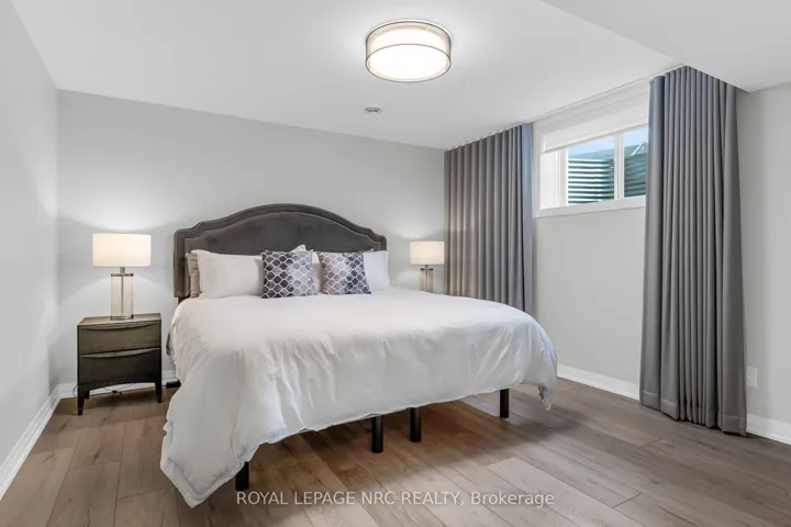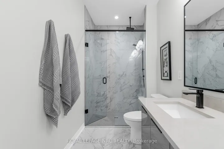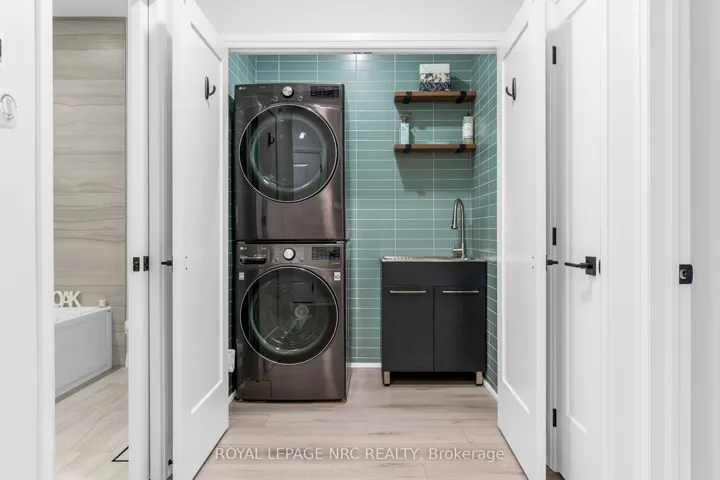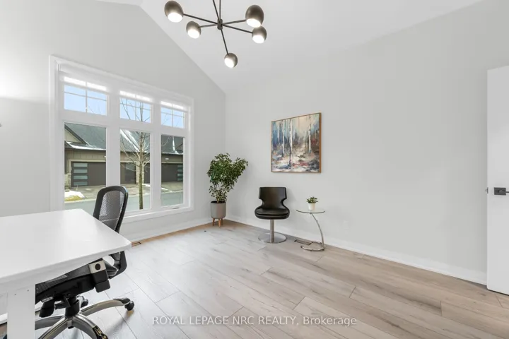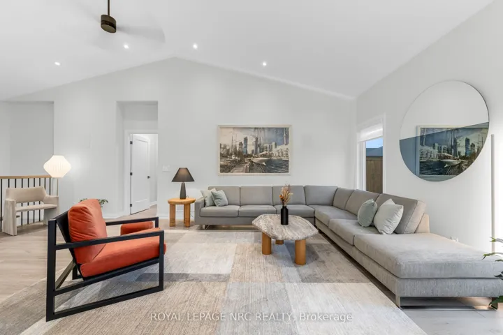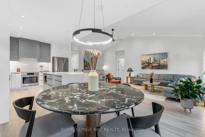 +"PublicRemarks": "Nestled in the heart of Lavender Fields, a Grey Forest community, this rare end-unit bungalow is the largest model in the neighbourhood, offering 1,508 sq ft on the main level plus approximately 850 sq ft of builder-finished lower-level living area. From the moment you enter, the sense of space is unmistakable. Ten-foot ceilings enhance the entry and both bedrooms, while the living room showcases a dramatic 12-ft ceiling. More than $200,000 in carefully curated upgrades elevate this home well beyond builder standards. The custom kitchen is a true showpiece, featuring premium cabinetry and hardware, Silestone quartz countertops/backsplash, smart storage solution including a pantry/spice drawer, and impressive 9-ft waterfall island with storage on both sides. High-end appliances include Bosch induction cooktop, wall oven and fridge and a Fisher and Paykel integrated double-drawer dishwasher. The serene primary retreat offers a walk-in closet, designer pendant lighting, floor to-ceiling custom drapery, and a four-piece ensuite with double vanity and glass-enclosed shower. The lower level includes open spindle staircase, spacious recreation room, third bedroom, three-piece upgraded bath, and generous storage area. Outdoor living is equally impressive with a private oversized composite deck and interlocking stone patio surrounded by greenery. The upgraded garage features an epoxy floor by Garage Kings, EV-charger outlet and insulated attic. Additional upgrades include smooth ceilings, upgraded trim and rounded drywall, integrated in-ceiling speaker system, designer lighting, premium plumbing fixtures, flow-through humidifier, whole-home water purification, extra-wide plank flooring, 3M privacy window tint, and much more. Low maintenance fee covers water, professional management, landscaping, and snow removal, delivering true turnkey living in one of Fonthill's most prestigious, architecturally controlled communities. Video & Virtual tour available."
