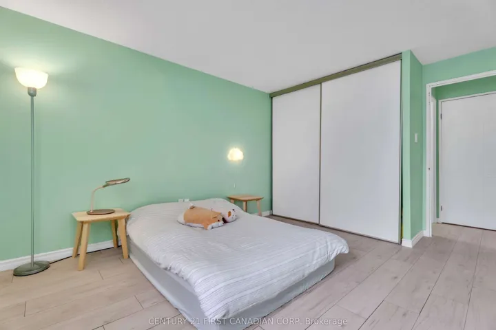 +"PublicRemarks": "Great location in sought after North London! Close to all amenities like COSTCO, T&T Supermarket, direct bus routes to WTO, different taste restaurants, Gym and trails. This unit features spacious living room, one large bedroom with big windows which allows sufficient sunshine to come in! Recently renovated--- new laminate flooring(Carpet FREE), new HVAC unit, new appliances, ceiling waterproof. This unit also includes convenient in-suite laundry, central air heat pump and heating, one exclusive parking spot plus ample visitor parking. Well maintained. All ready for move-in"