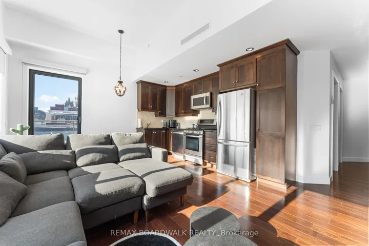 +"PublicRemarks": "You are going to love this condo! Flooded with natural light from south-facing windows, this corner unit features 1 large bedroom with a walk-in closet, 1 bath, hardwood floors, in-unit laundry, and a rarely available approx. 400 sq ft terrace! The living room, with space for your dining set, is wide open to the kitchen. Stainless steel appliances, including a gas stove, and granite counters. This unit comes with 1 underground parking spot and a locker. Step outside and experience the Ottawa Byward Market shops, restaurants, bars, entertainment, galleries, museums, transit, and much more! 90 George is a beautifully maintained building with excellent amenities, including an indoor pool, gym, rooftop terrace with BBQs, concierge service, and 24-hour security."