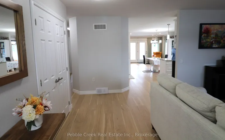 +"PublicRemarks": "Gorgeous bungalow located on a premium corner lot in the very desirable "Bluffs at Huron!" This immaculate "Stormview" model features over $116k in upgrades! Step inside the front foyer and you'll be very impressed with the bright open concept and warm welcoming feeling! The living room is stunning and boasts wall to wall custom built-in shelving, Napoleon Tri-Vista electric fireplace and 65" Sony TV which is included in the purchase price! The kitchen provides an abundance of upgraded cabinetry with soft closing doors and crown moulding, premium appliances, center island, quartz counter tops and walk-in pantry. There's a dining area adjacent to the kitchen with large south facing window offering an abundance of natural light. The cozy sunroom also offers tons of light and sports upgraded terrace doors leading to a spacious wooden deck. The primary bedroom offers a walk-in closet and 3pc en-suite bath including vanity with quartz countertop. The second bedroom and 4 pc main bath are located just down the hall. Plenty of storage options are available in the home as well, with lots of closets and storage in the full crawl space. Additional features include replacement premium engineered hardwood flooring throughout, brought in from "Craft Artisan Wood Floors" of Burnaby, BC and installed over 1/2" plywood! There are also custom Hunter Douglas blinds throughout along with upgraded light fixtures and pot lights. The separate laundry room offers LG front load appliances on pedestals and has direct access to the 1.5 car heated garage which has epoxy coated flooring. The covered front porch also sports premium epoxy covered concrete! This impressive home is located in an upscale adult land lease community, with private recreation center and indoor pool and located along the shores of Lake Huron, close to shopping and several golf courses."