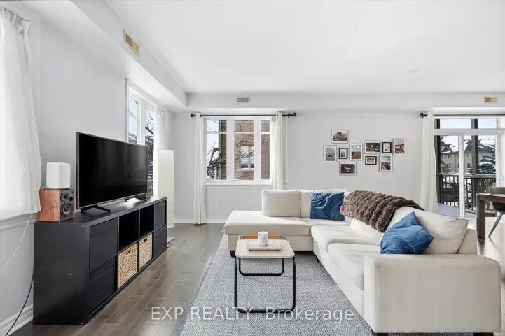 +"PublicRemarks": "This 1,135 sq. ft. corner unit in Barrhaven carries a quiet confidence. It was originally built as a model home, and it shows. The private entrance sets the tone immediately, opening into a layout defined by vast open space and oversized windows that pull in light from angles most units never see. Hardwood floors run throughout the home. The kitchen is finished with quartz countertops, and the whole space flows in a way that feels considered rather than accidental. There's a dedicated study nook that works genuinely well as a home office, a private balcony, and two generously sized bedrooms, the primary with a full ensuite and walk-in closet. Energy Star certified and a 4 min (300m) walk to Strandherd station and other everyday amenities. 24 hr irrevocable on all offers."
