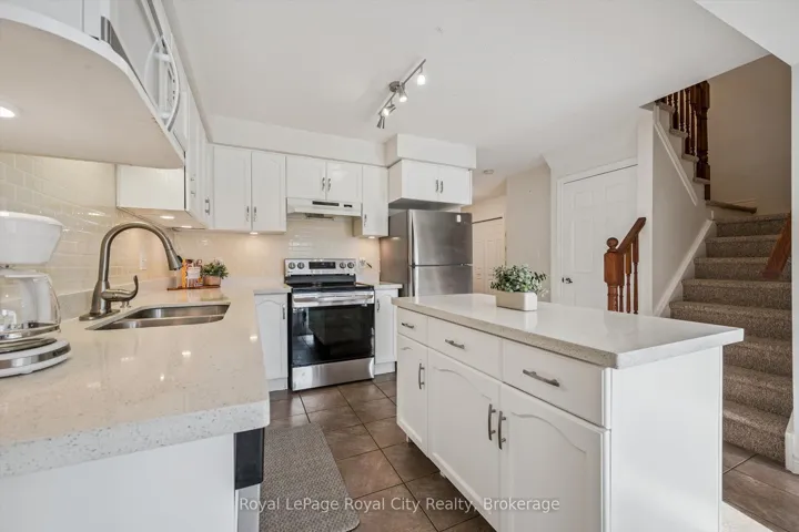 +"PublicRemarks": "This move-in-ready 3+1 bedroom, 3.5 bathroom townhome delivers the space, layout, and flexibility today's buyers want! Perfect for a move-up buyer craving more room, a young family looking to settle into a welcoming neighbourhood, or an investor seeking a strong rental opportunity near the University and public transit - this one checks all the boxes. The open-concept main floor is designed for everyday living and easy entertaining, with a social kitchen featuring a newer oven (2023) and central island that overlooks the dining and living areas. Sliding doors lead to a private deck, creating the perfect setup for summer BBQs. Upstairs, the primary bedroom enjoys its own ensuite, while two additional bedrooms are serviced by a full main bath - ideal for growing families. The finished basement adds even more value, offering a fourth bedroom with an egress window, walk-in closet, and private ensuite, making it perfect for guests, extended family, or a mature student. There's also bonus space for a dedicated work-from-home nook! Ideally located just minutes from schools (including the brand new secondary school!), parks, shopping, public transit, the University of Guelph, Starkey Hill trails, and Highway 401 access, this is truly a lifestyle-driven location. Low condo fees include snow removal, lawn maintenance, and coverage of major exterior components such as the roof which was re-shingled in 2024 - giving you the ease of low-maintenance living with added peace of mind whether you're moving in or adding to your investment portfolio."
