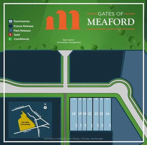 +"PublicRemarks": "To Be Built | Extra Deep 140' Lots | Occupancy Late 2026 / Early 2027. Introducing the Black Spruce by LCDG in the sought-after Gates of Meaford community. This newly constructed 1,300 sq. ft. townhome offers 3 bedrooms and 3 bathrooms, including a spacious Primary bedroom with private ensuite. The open-concept main floor features contemporary finishes and a well-planned layout suited to both daily living and entertaining. A single-car garage with inside entry adds everyday convenience.The unfinished basement provides excellent potential for future development, additional living space, or ample storage.Ideally situated just minutes from downtown Meaford's shops, dining, and waterfront, with easy access to the four-season recreation of Blue Mountains, Collingwood, and Owen Sound. Golf, skiing, hiking, and year-round activities are all within close reach.An outstanding opportunity to own a brand-new home on a premium deep lot in a growing four-season community."