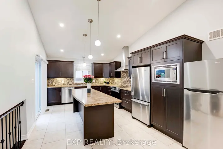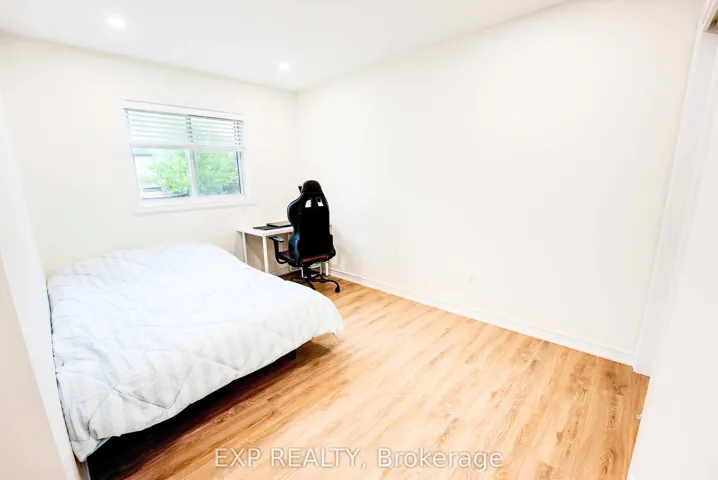 +"PublicRemarks": "Clean, spacious and full of natural light, newly renovated 800 sq. ft. 2-bedroom ground-floor unit with two private entrances - one directly from the driveway and another from the backyard's patio. The property backs onto the Stafford Municipal Park and sits on a large lot with mature trees. The ground level includes the dining area, kitchen, private laundry, bathroom, and a hallway with a built-in closet. The primary bedroom offers a gas fireplace. Bedrooms and the family room have laminate flooring, all other areas are finished with porcelain tiles. The fully renovated bathroom includes porcelain tile, a glass shower, vanity and toilet. 2025 upgrades include a new furnace and central air conditioner. The property located in a quiet, established neighborhood close to top ranked schools, York University, shopping, transit, Finch subway station, hospitals, community centers, pools, and sports facilities. *Tenants are responsible for 40% of utilities as well as lawn care, leaf cleanup, and snow removal."