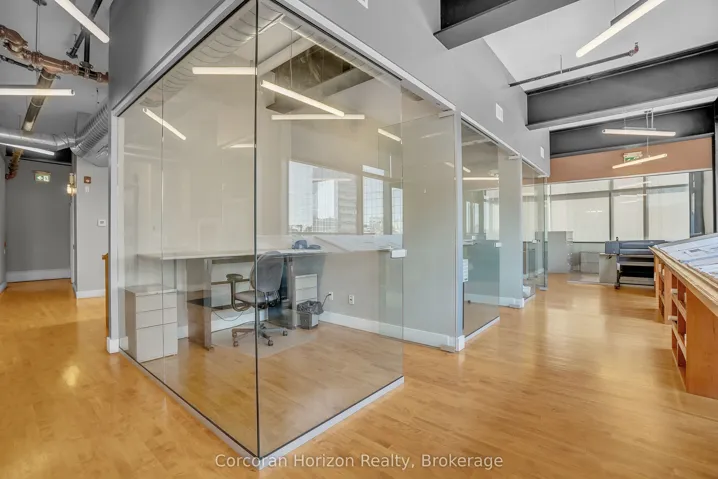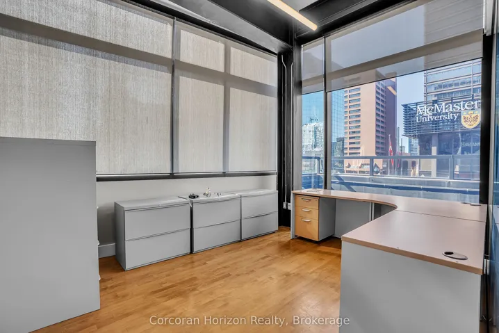 +"PublicRemarks": "Stunning and functional office space available at the prestigious King James Building! This impeccable suite offers 2,500 square feet of tastefully restored and renovated space, six private offices, private balcony, glass-enclosed boardroom, kitchen, in-suite washrooms (including one fully-AODA compliant), storage closets, exposed ductwork, post-and-beam construction, and access to the fifth floor common area terrace! Serviced by a fob-secured elevator that opens directly into the suite, this newly-available office is prodigious and practical. The building itself has been completely redeveloped by Core Urban; known for their brilliant combination of preserved heritage features and character with modern features and building systems. Located in the heart of downtown Hamilton, this suite is literal steps away from the major banks, City Hall, the court houses, Mc Master University's downtown campus, the James North Arts district, Jackson Square, the King William restaurant district, and so much more! Available today! Note: furniture shown in photography belongs to prior tenant and not available for use."