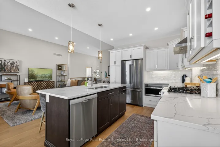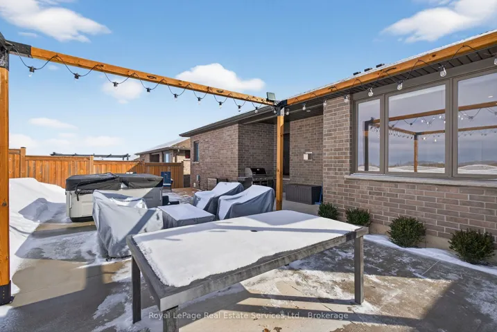 +"PublicRemarks": "Welcome to this stunning brick and stone bungalow in the heart of charming St. George, Ontario, where small-town warmth meets modern luxury. Built in 2020, this immaculate home offers open-concept living with over $90,000 in premium builder upgrades. The bright, airy main level features 11' high ceilings, beautiful engineered hardwood flooring throughout, expansive windows that flood the space with natural light, and a seamless layout ideal for everyday living and entertaining. The chef-inspired kitchen showcases elegant quartz countertops, upgraded cabinetry, stylish lighting, and overlooks the spacious dining and living areas. A striking floor-to-ceiling stone fireplace anchors the room, creating warmth and sophistication. Offering 2+2 bedrooms and 3 full bathrooms, this home provides flexibility for families, guests, or multi-generational living. The fully finished lower level expands your living space with a generous rec room complete with a second fireplace and upgraded plush carpeting, perfect for relaxing or hosting. Step outside to a professionally landscaped yard, featuring a gorgeous hot tub and pavilion, your own private outdoor retreat. A 2-car attached garage adds convenience. Pride of ownership is evident throughout. This home shows like new and is truly move-in ready. Located in the sought after community of St. George, you'll love the quaint atmosphere, scenic surroundings, excellent schools, and strong sense of community, all just a short drive to major amenities. Immaculate, upgraded, and thoughtfully designed. Priced exceptionally well, offered below comparable homes in the area, presenting incredible value. This is more than a home - it's a lifestyle. Don't miss your chance to view this exceptional property."
