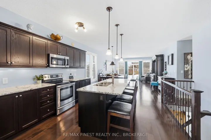 +"PublicRemarks": "This custom built home pays particular attention to detail with high end finishes throughout. The large entry flows seamlessly through to the open concept living areas with gleaming hardwood floors, 9' ceilings, a large kitchen with granite countertops and centre island that seats 4comfortably. Continue through the dining area to the living room with large patio doors and California shutters. The massive primary suite includes a 4pc bath with granite counters and a large tiled shower with glass doors. A bonus in this suite is another set of patio doors leading to a resort style backyard. To complete the main floor, there is an office/den, a 2 pc powder room and the laundry/mudroom which includes a full wall of built in cabinetry providing clean, ample storage to tuck away all your belongings. The fully finished basement is accessed by a beautiful hardwood staircase leading to an oversized rec room, large bedroom and a 4 piece bath. There's ample room for storage in the utility area but if you need more, there's plenty in the true double car heated garage with automatic door openers and a garage screen door. Last but certainly not least is the spectacular back yard which includes an on ground pool, private cedar gazebo with hot tub, a pergola and a fully fenced yard that is completely covered by composite decking and stone walkways. Let's not forget to mention the irrigation system for the front yard and a double paved drive that can accommodate up to 4 cars. There's nothing more to do here than move in and enjoy."