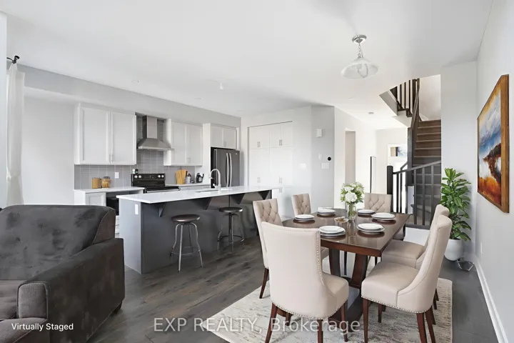 +"PublicRemarks": "Welcome to 1053 Lunar Glow Crescent - a beautifully updated 2020 Urbandale end-unit townhouse that perfectly blends modern design, functional space, and family-friendly comfort in the heart of sought-after Riverside South. Step inside to discover a bright, open-concept main floor featuring upgraded finishes throughout, including elegant flooring, designer lighting, and large windows that flood the home with natural light. The chef's kitchen impresses with stylish cabinetry, quartz counters, a large island, and stainless-steel appliances - ideal for family meals and entertaining alike. Upstairs, you'll find three spacious bedrooms, including a serene primary suite complete with a walk-in closet and luxurious 4-piece ensuite. The additional bedrooms are generous in size and share a sleek, modern main bathroom, while the convenient second-floor laundry makes everyday living effortless.The lower level offers a large recreation space - perfect for movie nights, a home office, or a play area - along with plenty of storage and roughed in and framed bathroom. Outside, enjoy your fully fenced backyard with a storage shed and room to relax or garden, all within a quiet crescent near parks, top schools, and shopping. Built with quality and care, this move-in-ready home offers exceptional value in one of Ottawa's most desirable communities."