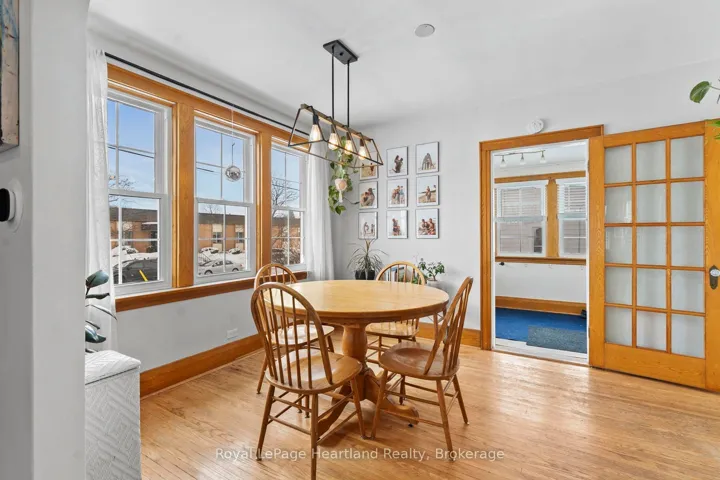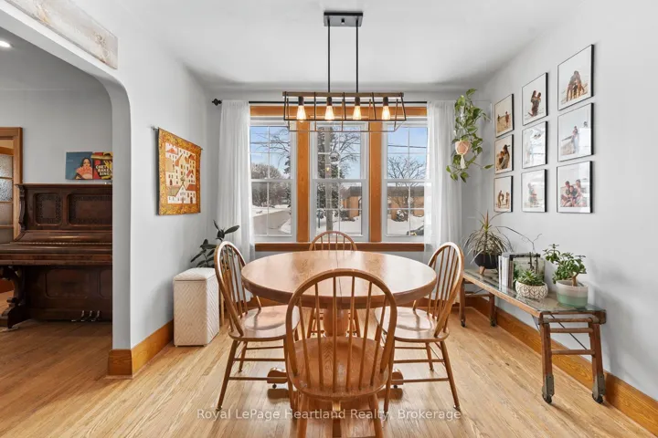 +"PublicRemarks": "Welcome to 108 Albert Street, Clinton - a three-bedroom brick home with stunning Tudor style architecture. This home features the charm of a 1942 build, with modern updates throughout for comfortable living. Original flooring, trim and doors paired with updated windows, electrical, plumbing and a beautifully renovated custom kitchen with new appliances - this home is a unique gem in the heart of Huron County. The main floor features a sizeable entryway/coatroom and an open-concept dining and living space, with ample natural light. You will also find a bedroom and full bathroom for convenient main floor living. Upstairs, there are two more sizeable bedrooms with ample closet space, and a balcony off the second bedroom. The full, partially finished basement has been recently renovated (2025), providing another living space/rec-room, or office to suit your needs. The basement offers ample storage space and many mechanical upgrades, such as a new hot water heater. The home's exterior is just as impressive, featuring beautifully landscaped gardens, a detached garage and two driveways for ample parking. The large backyard features a newly poured pad for backyard hangouts, a blooming magnolia tree in the spring and a new fence. Located in the quaint town of Clinton, just 15 minutes from Lake Huron and an hour from London, this home is ready for its next owners. Don't hesitate to check this one out!."