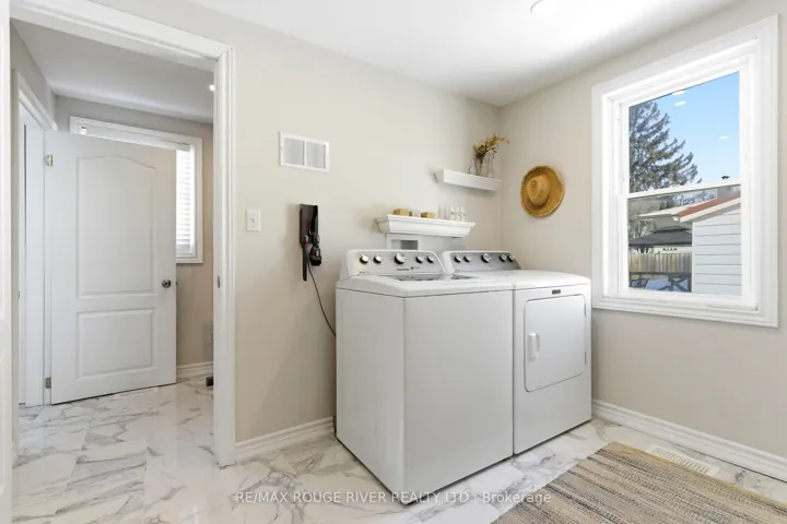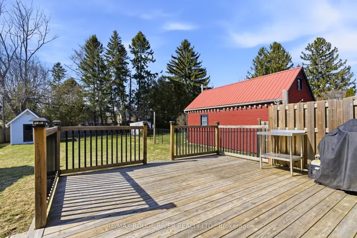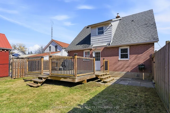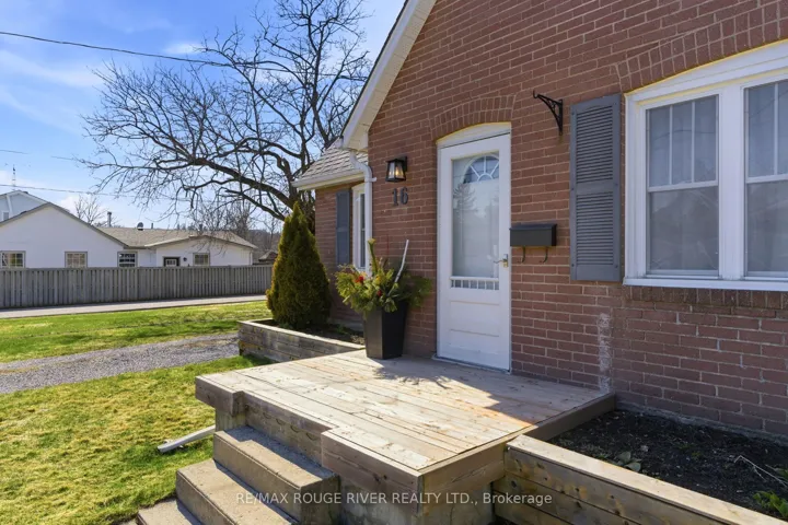 +"PublicRemarks": "Down a quiet street in Port Hope this all-brick, 1 1/2 storey home catches your eye with its clean lines and appealing façade. Offering approximately 1294 sq ft of living space and sited on a large fenced lot, the home's bright interior is refreshing and welcoming. Upon entering, you'll notice that the home is carpet-free, the living room has hardwood flooring and bright southern windows. The kitchen has extra counter space and cabinetry for culinary enjoyment like entertaining and family dinners. The main floor also has a super walk-in shower in the 3 pc bathroom with tiled walls and floor. And so impressive is the bright laundry room (8.7' x 10') with storage cupboards, a folding and drying area and room to manoeuvre to make the workload of doing laundry easier. At the top of the stairs to the second floor with a dormer window lighting the area, you'll notice the uniquely designed steel railing and 3 well-appointed bedrooms plus an updated full bathroom to complete that cozy living space. Outside, while grilling on the BBQ and one might be relaxing on the 17' x 26' updated deck, dogs and kids can be safely playing in the fully fenced backyard. There's also 2 garden sheds for storage. To avoid on-street parking, there are two driveways that can hold 3-4 vehicles. With the curb appeal of this attractive home and the proximity to great shopping in the historical town of Port Hope, access to walk the nature trails along Lake Ontario and other important amenities, 16 Margaret Street is tailor-made for living enjoyment."