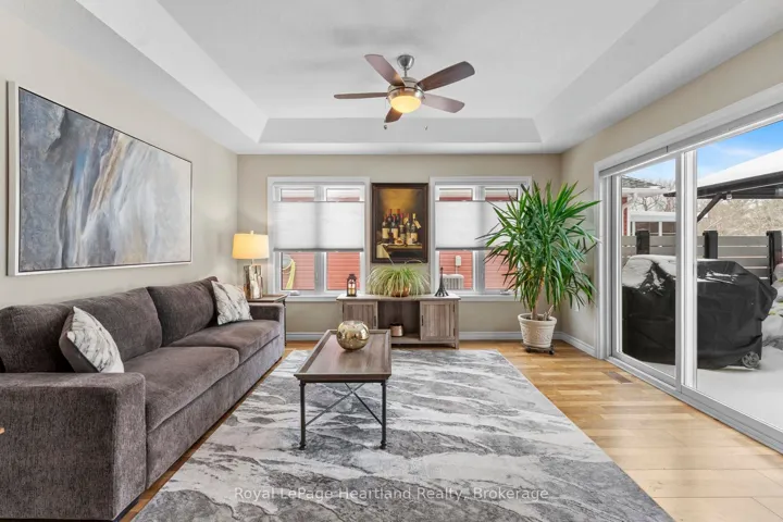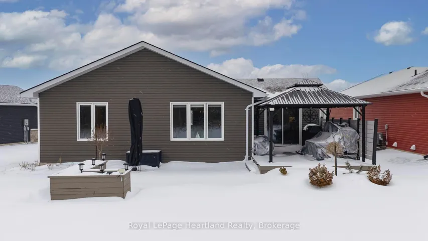 +"PublicRemarks": "Prime location near the lake! Set in the highly sought-after Bluffs at Huron, this immaculate bungalow backs onto an open field and natural environment, offering a peaceful backdrop and privacy, while still being a short stroll to the community rec centre, lake access, and all the lifestyle perks that make this waterfront neighbourhood so desirable. This impressive "Lakeside with Sunroom" model offers approx. 1,455 sq ft of designed living space and a long list of quality upgrades. Curb appeal shines with manicured landscaping, mature trees and an inviting front porch. Inside, the bright, welcoming layout is finished with high-end continuous flooring and upgraded lighting. The custom kitchen is a standout with abundant cabinetry topped with crown moulding, soft-close doors, quartz countertops, tile backsplash, under-cabinet lighting, an enlarged centre island, built-in microwave, high-capacity range hood fan, Bosch panel dishwasher, and induction stove. The kitchen flows seamlessly into the dining area and sunroom featuring a tray ceiling and patio doors to the outdoors. Step outside to a spacious south-facing composite deck complete with gazebo, privacy wall, and a professionally installed 16' x 16' stone patio-perfect for entertaining or quiet evenings. The generous primary bedroom offers a walk-in closet and 3-piece ensuite. A second bedroom and a stylish 4-piece main bath complete the main level; both baths are upgraded with quartz counters, tile details and glass sliding shower doors. Relax in the living room beside the contemporary low-profile Solas gas fireplace with remote. Enjoy plenty of storage with multiple closets, a full crawl space, and an attached two-car garage. Bonus: six appliances included. Located in an upscale land lease community with a private recreation centre and indoor pool, close to shopping and several golf courses. Book your private showing today!"