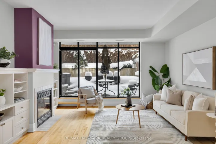 +"PublicRemarks": "Fabulous 2-bedroom condominium located within "The Lanesborough" - a prestigious Domicile-built residence located steps to Parliament Hill, the Rideau Centre, By Ward Market and the Rideau Canal, with an incredible selection of vibrant restaurants and trendy cafés right outside your door! This beautifully designed unit offers 1,090 sq ft of well-planned living space with soaring 10 ft ceilings and a spacious, open-concept layout. A true standout feature is the exceptional ~36' x 19' private patio - a rare offering perfect for entertaining or relaxing in the city! The stylish kitchen is equipped with stainless steel appliances, granite countertops, a centre island with breakfast bar, and a storage pantry. The open living and dining room features a cozy gas fireplace, custom built-in shelving and a wall of windows that flood the space with natural light. The primary bedroom boasts a generous walk-in closet with custom organizers, while the spacious second bedroom is ideal as a guest room or home office. A beautifully appointed 3-piece main bathroom features a granite vanity and glass shower. Additional highlights include in-suite laundry, underground parking and a storage locker. A rare opportunity that perfectly blends style, outdoor space, walkability and an exceptional urban lifestyle! 24 hour irrevocable."
