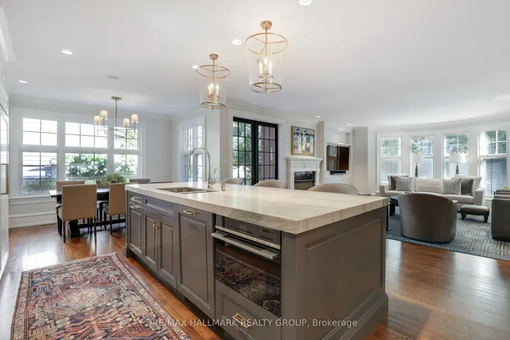 +"PublicRemarks": "A rare offering in Ottawa's prestigious Island Park neighbourhood - 525 Piccadilly Avenue is a Barry Hobin designed corner estate with interiors by 2H Design, blending heritage character and modern luxury across four levels. The grand foyer sets the tone with soaring ceilings, rich hardwood, and detailed millwork. Formal living and dining rooms feature original hutches, restored shelving, and a marble fireplace. A spacious family room with bay windows, marble gas fireplace, and custom cabinetry opens to the designer kitchen and outdoor living. The kitchen showcases antique mirrored cabinetry, leathered quartz counters, a custom range hood with gas range and steam oven, wine tower, and oversized island paired with a breakfast room complete with serving area and office nook. A herringbone marble tiled mudroom with custom cubbies connects via breezeway from the over-sized garage for discreet family entry. French doors lead to a resort-style backyard with terraced dining, built-in BBQ kitchen, gunite pool with spa and water feature, and multiple lounge decks surrounded by manicured gardens. The second level offers a serene primary suite with bay window views, travertine and limestone ensuite, and dual walk-in closets. Two more bedrooms incl. another with ensuite as well as one currently used as den/office, and four-piece bath complete the floor. The third level is host to spacious bedrooms with full bath between the two. The lower level includes a recreation room, gym with infrared sauna, custom wine cellar, nanny/guest suite with bath, laundry, and ample storage. Timeless architecture, designer finishes, and exceptional outdoor living make this Island Park residence an extraordinary opportunity."