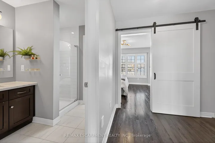 +"PublicRemarks": "Ideally located in the heart of Waterdown, this refined 3-bedroom, 2.5-bath residence offers walkable access to shops, dining, parks, and downtown amenities, with seasonal highlights right out side your door. The entry level features direct garage access, a full bath, a versatile bedroom or office, and a walkout to a private patio. The main living level showcases custom millwork, plank flooring, a designer powder room, pantry, and an elegant kitchen with breakfast bar. The sunlit living space opens to a secluded, tree-lined deck-perfect for quiet mornings or evening unwinding. Upstairs, two spacious bedrooms include a well-appointed primary with custom built-ins, a statement feature wall, and semi-ensuite access. A generous main bath and convenient laundry complete the home. The unfinished lower level offers excellent potential for additional living space. A rare opportunity to enjoy style, comfort, and convenience in one exceptionallocation."