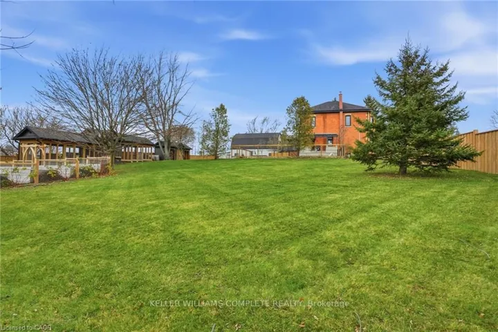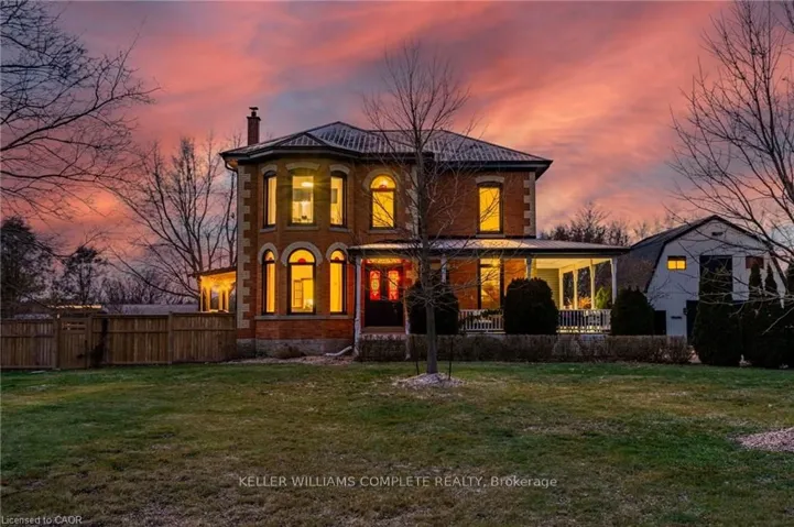+"PublicRemarks": "This updated red brick century home is sure to stun you with its beauty! Drive up the long interlock drive and be greeted by the wrap around porch and the handcrafted mahogany exterior doors. This stately home has original character details you'll love - 10' main floor ceilings, stained glass windows, the original front doors, beautiful glass pocket doors, pine and maple tongue and groove floors throughout, stained solid wood trim work, decorative ceiling medallion, the original fireplace (converted to gas), claw foot tub, the library chandelier is an original Hamilton gas street light converted to electric, and 2 staircases to the second floor. But, it's been updated to elevate the home and fit the modern family - adding crown molding, coffered ceiling, wall trim, a new kitchen, new bathrooms (including an ensuite with a double shower), second floor laundry, a large walk-in pantry/prep-kitchen, a library that could double as an office, and brick flooring in the mudroom. This home has the original character we all crave in homes while meeting the modern family lifestyle. Set upon approx. 1.38 acres this is country living at its best while still being just a short drive to amenities and commuter access routes. With almost half of the property fully fenced off you can enjoy the backyard privacy and safety letting children and dogs run freely. The backyard also boasts an elegant 50'x50' raised bed garden with a greenhouse, a new 'chicken coop mansion', large wood storage shed, an inground pool and hot tub. The detached garage, a full 2 storeys + a loft, functions as both a garage and a workshop. Adjacent concrete pad for RV/trailer parking. Updated electrical, new windows (2025), new soffit/fascia/eaves (2025), new siding (2025). The other half of the basement could be finished to add more room and includes 3-pc bathroom rough-ins. A full staircase to the loft is installed and loft could also be finished to add another room. Visit URL for more photos, floorplans, etc"