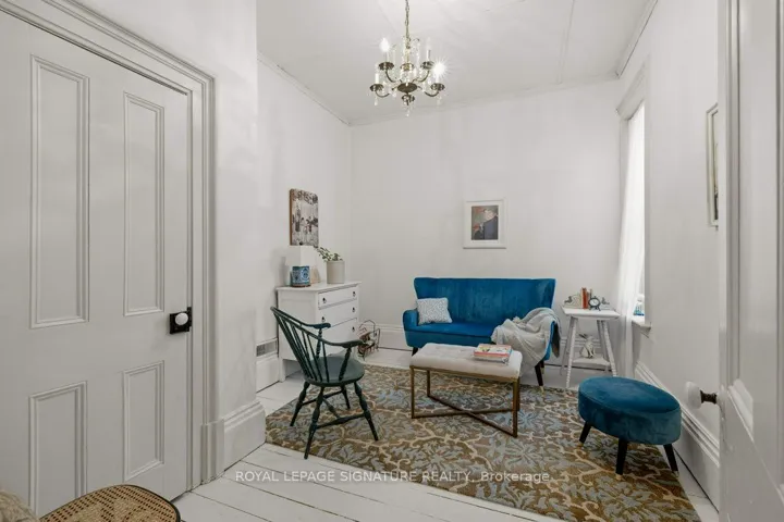 +"PublicRemarks": "Built in 1871 and quietly anchoring one of Napanee's most established streets, this stately triple brick Victorian offers five bedrooms and two baths and sits just a five-minute walk from the downtown core, riverfront boardwalk, parks, schools, hospital, and local boutiques. Set within historic Napanee, the home reflects an era when craftsmanship was intentional and architectural detail mattered.Original wood floors run throughout the light-filled principal rooms. A graceful arched doorway connects the family and sitting rooms, while two fireplaces, one marble and one oak, anchor the main living spaces. Ten-inch baseboards, extended height windows, solid double doors, and a striking bannister speak to a level of construction rarely replicated today. Main floor laundry offers everyday convenience without compromising character.Upstairs, the primary bedroom opens onto a private upper porch, a peaceful perch for evening sunsets. Generous porches extend the living space outdoors, offering multiple vantage points from which to enjoy the gardens and neighbourhood streetscape. The full, dry basement provides substantial storage and workshop space. A shared drive leads to the original two-storey carriage house, where a historic horse stall remains intact beneath lofted storage, a rare and increasingly uncommon survivor of the Victorian era. Meticulously maintained and thoughtfully preserved, this is an opportunity to steward a significant nineteenth-century home in one of Ontario's most charming small towns."