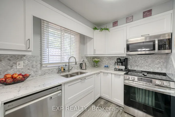 +"PublicRemarks": "Beautifully Renovated Condo for Sale Desirable East London Location. This stunning condo has been thoughtfully renovated with modern style and comfort in mind. Featuring high-end finishes throughout, including brand-new stainless steel appliances, quartz countertops, and more, its truly move-in ready. Kitchen includes-two double level corner lazy susans-two full floor to ceiling pantry cabinets with multiple sliding drawers-multiple pot and pan drawers-under cabinet valances and lighting, quartz counter top with double undermount sink and peninsula, 4 new stainless steel appliances including a 36" refrigerator with water, ice, and an extra programmable compartment, brand new upstairs floor to ceiling ceramic tile shower with new vanity and quartz countertop with large oval right-height toilet-new vinyl plank flooring through out the two levels-new high quality fans with lights in each bedroom-new washer and dryer-three year old water heater (owned), new rubbermaid maintenance free garden shed-large one year old sienna deck accessed through patio door to a beautiful treed area behind unit, The bright, open-concept layout is perfect for todays lifestyle, while the unspoiled basement provides a blank canvas for your personal touch whether its a home gym, office, or additional living space. Don't miss the opportunity to own a beautifully updated home in one of London's most desirable east-end communities!"