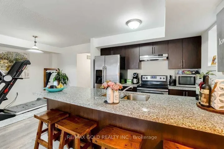 +"PublicRemarks": "Welcome to this gorgeous and sun-filled 2 bedroom & 3 Bathrooms total of 1,268 sqft. stacked townhome designed for modern living; almost 400 Sqft outdoor rooftop terrace offers plenty of space for entertainment and gatherings; Both Livingroom and bedrooms boast floor-to-ceiling large windows; Featuring soaring 10 ft smooth ceilings in the ground level and 9 ft ceilings in the upper level; Laminated Flooring throughout; A modern and open concept kitchen equipped with premium finishes, including quartz countertops, a central island, tile backsplash and built-in appliances; The primary bedroom features its own balcony access, a 3-piece ensuite with a stunning glass shower and a generous closet; 1 Underground Parking, 1 Locker, Landscape Maintained by Property Management. Close to Hwy 404, Costco, Home Depot, Staple, Shops, restaurants, parks and Community center. Must see..."