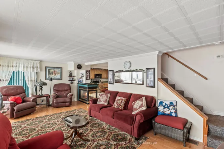 +"Inclusions": "10 Foot Ceilings, Waffle Coffered Ceilings, Crown Moulding, 2 Gas Fireplaces, Glass Railings, Separate Entrance to Finished Walk-Up Basement with Rec Rm. h Backyard fence to be completed by the seller. Current back deck is beautiful but can be removed by Seller if Buyer prefers more space in rear yard. Brand New Appliances, lighting and fixtures throughout. Close to Waterfront, Parks, Trail, Schools, Shops, Restaurants, 401 and more."