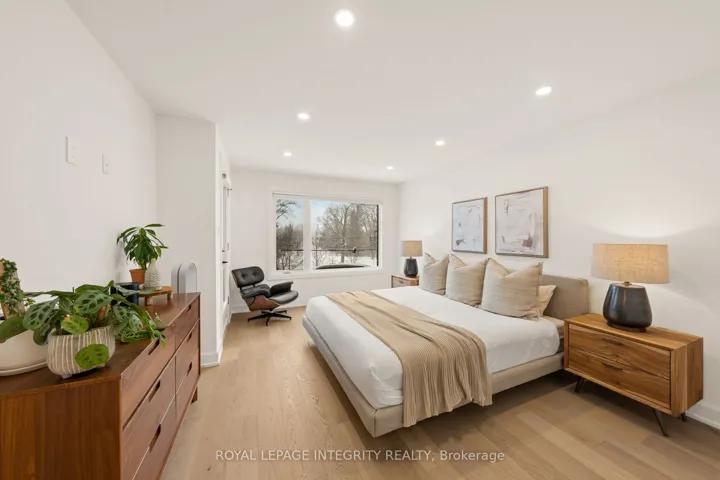 +"PublicRemarks": "Situated in the heart of Westboro Village and directly overlooking Clare Gardens Park, this exceptional 2022-built semi offers over 3,200 sq ft of beautifully finished living space and an oversized South facing backyard. Thoughtfully designed for modern living with future flexibility in mind, the home features a separate side entrance to the lower level which is fully roughed-in for a legal secondary dwelling - offering excellent potential for multi-generational living or rental income. The main floor is both functional and refined, featuring a dedicated home office, a generous walk-in foyer closet for clutter-free living, and a striking custom gas stone fireplace that anchors the family room. Wide-plank European oak flooring and Hunter Douglas blinds add warmth and texture throughout. At the heart of the home, the custom Deslaurier kitchen showcases quartz countertops, premium appliances, designer lighting, and a walk-in pantry complete with custom millwork. The adjacent dining area is enhanced by an oversized bar with built-in wine fridge - perfectly suited for entertaining. Upstairs, the primary retreat offers an oversized balcony with durable composite flooring and a spa-inspired ensuite with heated floors. Custom millwork continues throughout every closet, maximizing both function and style, while a full upper-level laundry room adds everyday convenience. The fully finished lower level features high ceilings, a bright bedroom and full bathroom, and is fully roughed-in for a secondary dwelling unit - well-suited for guests or future suite configuration. All just steps to Richmond Road's boutiques and cafés, the Ottawa River Pathway, and Westboro Beach - an exceptional opportunity in one of Ottawa's most sought-after neighbourhoods. Exterior wooden posts will be sanded & stained. Tarion warranty will transfer. Irregular lot (27 ft frontage, 35 ft at rear). Incredible sound-proofing between the properties. This wonderful home awaits its new owner!"