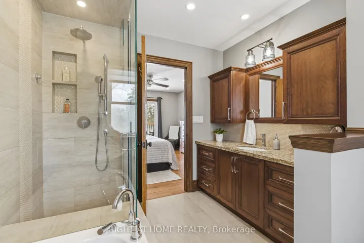+"PublicRemarks": "Experience the pinnacle of craftsmanship in this impeccably rebuilt Niagara-on-the-Lake estate. Nestled on close to 3/4 acre rural lot, this 5 bedroom, 4 bathroom custom home with over 3,000 finished sqft is for the discerning buyer who values true solid and quality construction. PLEASE SEE PHOTO #3 FOR MORE PROPERTY DETAILS & INCLUSIONS. In the main residence, you will find warm deep wood trims, gleaming hardwood floors, large open living + dining spaces with many windows to bring in the light from all sides of the home. Chef's kitchen is outfitted with stone countertops, under-mount sink, and top-tier cabinetry, open to the backyard, hot tub, and in the distance, mature trees + a fire pit to enjoy those family summer evenings. There are 3 outdoor covered porch spaces to enjoy. The upper level includes 4 bedrooms on one floor, perfect for families, & 2 bathrooms including an ensuite and walk-in closet with built-ins. There are 2 laundry areas conveniently located. The lower level is completely finished with hi-end luxury flooring and includes living room, bedroom + bathroom, and additional storage. BONUS PROPERTY FEATURES: IMMACULATE INSULATED 6 CAR HEATED GARAGE, EV charger, workshop including bathroom, 600 volt power for 220 & 110 outlets. Perfect for any home based business. Plus EXTRA BONUS (Rarely Offered): 2nd level space - almost 1500 sqft! Ready to be transformed to a luxury guest house, second residence, or home based offices. Unbeatable location in Niagara-on-the-Lake - close to world class theatre, wineries, + dining experiences. A peaceful retreat, yet very close to all modern amenities. Huge opportunity here - MUST SEE!! **INCLUDED: John Deere Riding Mower with Trailer, tool cabinet in garage, snowblower, all appliances as seen in photos**and so much more!!!"