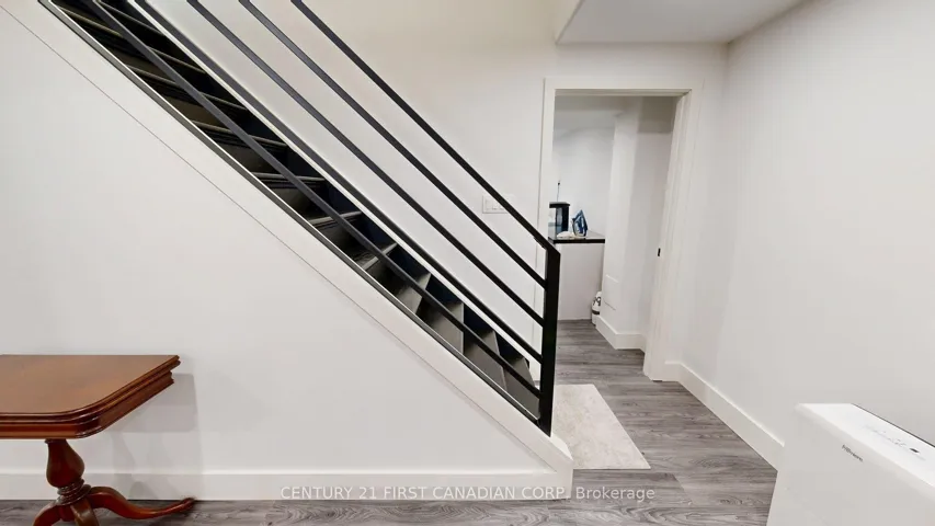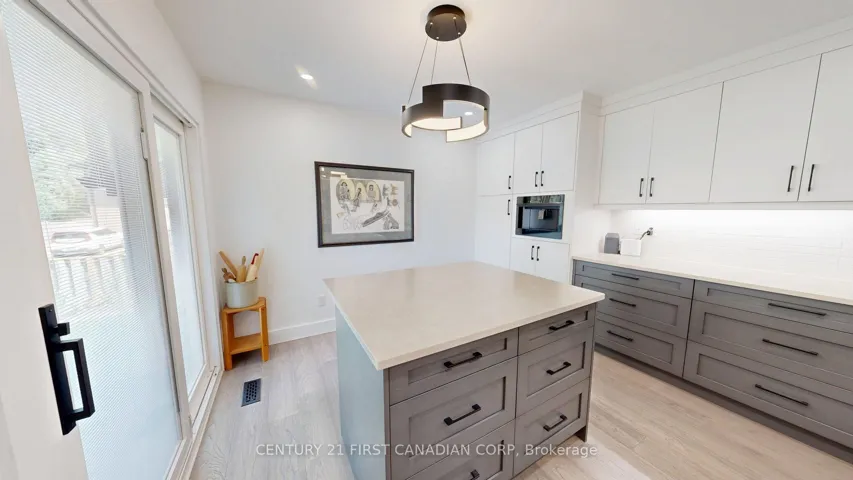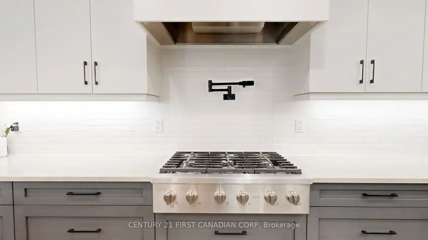 +"PublicRemarks": "Reimagined one-level luxury with thoughtful living in every detail. This fully renovated bungalow-style townhome offers sophisticated design, premium upgrades, and effortless turnkey living. No expense has been spared in this meticulously upgraded home, ideal for those who appreciate quality craftsmanship and refined finishes. The heart of the home is a stunning chef's kitchen featuring GE Café and Bosch 800 Series appliances, gas cooktop with pot filler, convection wall oven and microwave, custom Casey's cabinetry, quartz countertops, under-cabinet lighting, floating shelves, a sleek VENT-A-HOOD, oversized island, and pull-out pantry. Enjoy engineered hardwood flooring, dimmable pot lights, and remote-controlled blinds in the bedrooms. Custom storage continues with glass-paneled sliding closet doors and built-in shelving throughout. The primary suite includes a motion-sensor walk-in closet and 220 wiring for a future stacked washer/dryer. Spa-inspired bathrooms feature quartz vanities, walk-in rain showers, glass enclosures, and bench seating. The finished basement adds valuable living space with a custom steel stair railing, ample storage, and a pre-installed propane line for a future fireplace. Exterior upgrades include a new concrete patio and walkway, manicured gardens, finished single-car garage, patio doors with built-in blinds, and most windows replaced in 2021. Additional highlights: Maytag Commercial washer/dryer, furnace (4 yrs), water heater (5 yrs), updated electrical (basement fully rewired; main floor pigtailed and inspected), loose-lay basement flooring, 5" baseboards, and upgraded doors and hardware throughout. Located in a quiet, well-maintained community-perfect for downsizers, professionals, or anyone seeking a refined, low-maintenance lifestyle. Move in and enjoy. If you know, you know."