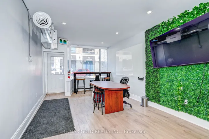 +"PublicRemarks": "Presenting an exceptional commercial office space in a prime, high-traffic location offering outstanding visibility and exposure for your business. This meticulously designed, state-of-the-art office showcases top-of-the-line finishes, premium custom furniture, and a modern layout tailored for productivity and professionalism. Featuring 8 private office rooms, a spacious boardroom, and an expansive upper-level meeting and collaboration area, the space imperfectly suited for growing teams and client-facing operations. A grand reception area with an elegant waiting lounge creates a strong first impression for visitors and clients alike. The unit is thoughtfully equipped with 3 well-appointed washrooms, a functional eat-in kitchen for staff convenience, and dual access including a rear entrance for added flexibility and ease of operations. Every office room is secured with digital locks and monitored by a comprehensive CCTV system, ensuring safety and peace of mind. A fully integrated central Sonos audio system enhances the ambiance throughout the workspace. With ample on-site parking, seamless connectivity to major highways, and prominent signage opportunities to elevate your brand presence, this location offers both convenience and visibility. Ideal for professional uses such as real estate, insurance, mortgage brokerages, legal practices, consulting firms, and other corporate offices, this turnkey space is designed to impress, support business growth, and provide a sophisticated environment for both staff and clients"