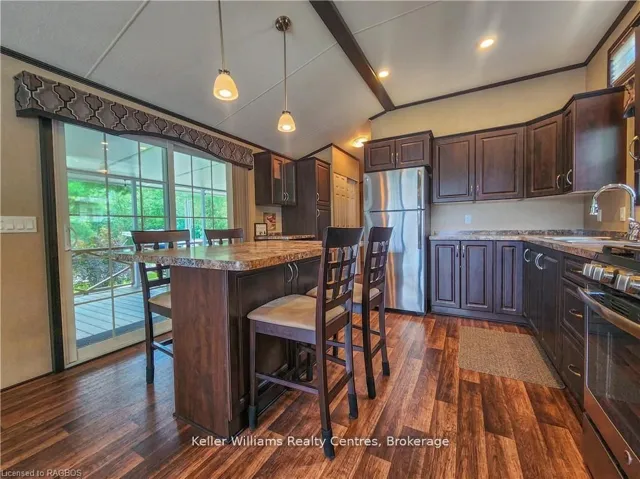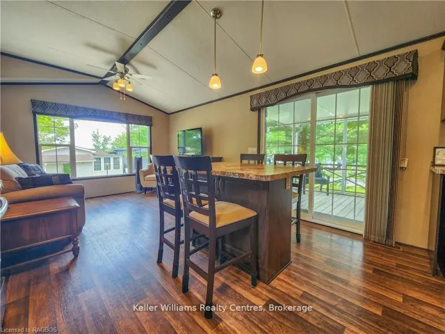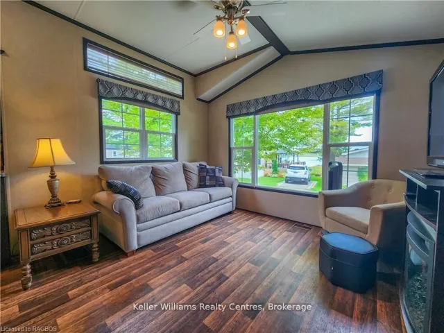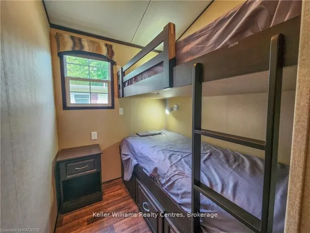 +"PublicRemarks": "NO TRANSFER FEE! This fully furnished, turn key 2016 Northlander Cottager Escape stuns with vaulted ceilings, hardwood floors, and big windows framing lush views. Cozy up by the electric fireplace or host movie nights in the living room. The sleek kitchen, with stainless steel appliances and a spacious island, makes family meals or game nights a breeze. Sleep easy in the plush queen primary bedroom, while kids and guests crash in the bunk room. The modern bathroom boasts a glass shower and ample storage. Outside, a covered deck with comfy seating, a fire table, BBQ, and dining area sets the stage for epic gatherings, rain or shine. Roast marshmallows at the fire pit, surrounded by a lush, tree lined yard with a storage shed for all your gear. Dive into lake fun; boating, fishing, swimming or stroll scenic trails. Fishermans Cove delivers big with a marina, playgrounds, indoor pools, and community. Your wallet friendly family vacation or retirement retreat awaits, don't miss out! (*Seasonal park, not a primary residence. Lease fees pre-paid until July. Park open April 1-October 31, $4,160 + tax/year(based on 5 year lease $20,800))"