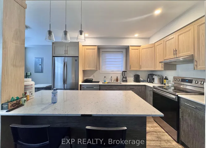 +"PublicRemarks": "Located in an area where convenience meets nature, Tree Tops is just minutes from the Town of Huntsville, next door to the Hidden Valley Ski Hill and across the street to the beaches of Pen Lake. Imagine living in this kind of paradise! This condo is a rare find with all of the interior on one level as well as the outdoor access having NO stairs to manage. As you enter the unit you are greeted within an amazing entrance where you can keep your outdoor gear away from the rest of the living space. Featuring a gorgeous open concept kitchen/living/dining area, with a centre island hosting quartz counters, builtin dishwasher, full sized fridge and stove. This condo shows its modern touches throughout with a beautifully handmade barn door separating the living area from the dining area, or this space can be used as a bedroom as well, the choice is yours! As you make your way to the bedrooms, you will find a generously sized primary suite complete with his/hers closets and a 3 piece ensuite with a large glass walking shower. Next you will find the second 4 piece bathroom, and then another large bedroom with a double sized closet. Plenty of storage in the laundry room with extra cabinets and counter space."