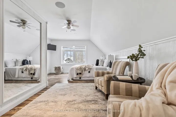 +"PublicRemarks": "Captivating Beach Home!75335 Maxobel Rd is sure to impress with its striking design, quality construction & detail second to none set amongst a mature .64 acre backdrop of tall trees,lush landscaping while only steps to the sandy shores of Lake Huron! This property is perfect for entertaining guests and family with 6 bedrooms & 2.5 bathrooms & a large concrete driveway for guest vehicles.A spacious entry invites you to an open concept living space with 16 ft ceilings in the light-filled great room featuring a wall of windows & stone fireplace.Bright elegant kitchen with quartz countertops,stainless steel appliances,gas stove & spacious eating area surrounded by large windows.Main floor master bedroom retreat features a luxurious ensuite washroom with heated floors,large soaker tub & a double-headed glass shower.Also on the main floor,a guest bedroom,2 pc bathroom & laundry.Two access points from inside the home to the double car garage with upgrade hydro for electric vehicles/heavy equipment,handy separate storage room with garage door side yard for tools/lawnmower.Upstairs offers two over-sized bedrooms with plenty of natural light & space to utilize.Open concept fully finished lower level has 9ft ceilings,heated floors,large living room,wet bar with bar fridge,two spacious bedrooms & a luxurious 4pc washroom with double vanity & glass shower.Plenty of storage in this home.This home is equipped with a generator,a security system,is on municipal services for water and sewers is fueled by natural gas.It also has 8 zones wired for sound system inside & outside.Relax on the expansive composite rear deck while taking in the tranquil setting surrounded by the tall majestic trees.The rear yard also features an outdoor shower for washing off from the sandy beach visits (deeded access mere steps away),a custom tree house with zip line. Located minutes south of the beautiful town & marina of Bayfield, ON.Don't miss your opportunity to own this stunning piece of real estate!"
