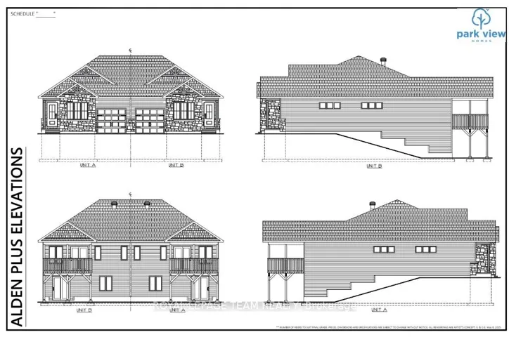 +"PublicRemarks": "Move In Summer 2026 - Now Being Built - The Alden Plus by Park View Homes. Secure your future today with a thoughtfully designed 2-bedroom, 2-bath Energy Star certified bungalow semi-detached townhome set on a large corner lot with space to enjoy. This bright, modern home offers a partially finished walkout basement and an exciting opportunity with mid-July 2026 occupancy. The open-concept main floor is ideal for everyday living and entertaining, featuring wide-plank flooring, hardwood stairs, and quartz countertops throughout, all curated in a timeless modern rural-chic palette. The upgraded ensuite shower adds a refined touch to the primary suite. Step outside to the large 10' x 13' rear covered deck, complete with a gas line to the BBQ - perfect for seamless indoor-outdoor living. The finished walkout basement expands your living space with a spacious rec room and a convenient 3-piece bathroom rough-in, offering flexibility for future customization. Built with superior energy efficiency - including triple-glazed windows and high airtightness construction - this home delivers long-term comfort and energy savings. Stainless steel kitchen appliances, plus a white washer and dryer and automatic garage door opener, are included. Additional exterior features include sodded front and rear yards, an asphalt driveway, and a patio stone walkway for added curb appeal. Backed by the Tarion Warranty Program, The Alden Plus blends quality craftsmanship, modern style, and efficiency - ready to welcome you home. Photos are of a previously built home by the same builder and are provided for illustrative purposes only. Images may include upgrades not included in the base price. Actual finishes and specifications may vary."