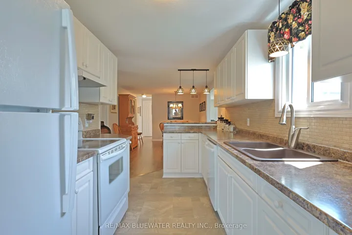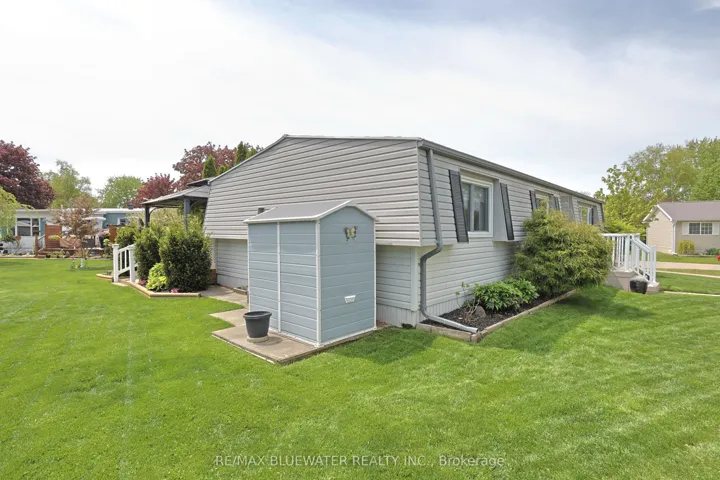 +"PublicRemarks": "Updated one floor living in the gated leased land community of Grand Cove. Located on a quiet cul-de-sac this home shows of its great curb appeal the moment you turn down the street. Landscaped gardens provide color and beauty around the home while the vinyl siding, metal roof with gutter guards, front and side porches with vinyl railings and composite decking provide a low maintenance great looking appearance. Outside in the backyard you have a large deck with a covered gazebo overlooking your back lawn. Inside, the home was professionally updated in 2004 by Rice Homes featuring drywalled ceilings and walls throughout and constantly improved over the years with recent updates including the furnace and AC in 2019 and new flooring throughout about 9 years ago. The spacious design of the floor plan and large windows allow for large principle rooms flowing with natural light. The living room at the front of the home includes a large picture window overlooking the front entrance, gas fireplace and high quality laminate flooring that flows into the front foyer and dining area off the kitchen. Galley style kitchen with white cabinetry, tile backsplash and eat up countertop. The cabinetry from the kitchen extends into the adjacent laundry area for extra storage and closet space. Added living space in the family room that overlooks the back yard with patio doors leading to the back deck. Main floor primary bedroom with walk through closet and ensuite. Guest room for family and friends and a full bath off the bedroom hall completes the floor plan. Grand Cove Estates is a land lease community located in the heart of Grand Bend. Grand Cove has activities for everybody from the heated salt water pool, tennis courts, wood working shop, garden plots, lawn bowling, nature trails and so much more. All this and your only a short walk to downtown Grand Bend and the sandy beaches of Lake Huron with the world famous sunsets. Come view this home today and enjoy life in Grand Bend!"