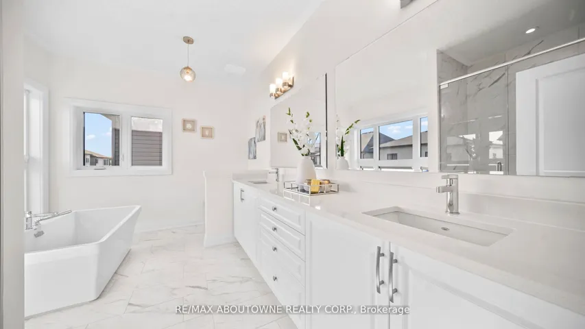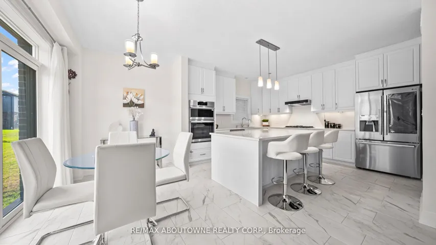 +"PublicRemarks": "Discover elevated contemporary living in this nearly new Net Zero Ready home, ideally situated in the highly sought-after Harvest Park community. Offering 4 bedrooms and 3.5 bathrooms, this thoughtfully customized home showcases over $150,000 in premium upgrades, seamlessly blending sophisticated design with sustainable efficiency. The main level features a sun-filled open-concept layout anchored by a chef's kitchen complete with high-end appliances, custom ceiling-height cabinetry, and effortless flow into the dining area and great room-ideal for both everyday living and entertaining. A dramatic waffle ceiling adds architectural interest, while a powder room and convenient main-floor laundry complete the space. The main ensuite has a walk-in closet and a spa-inspired ensuite with expansive feature window. Impressive 9-foot ceilings enhance the sense of openness throughout, extending into the professionally finished basement. Upstairs, you'll find four generously sized bedrooms plus a versatile family room that can easily function as a fifth bedroom or home office. The primary suite offers a private retreat with a walk-in closet and a spa-inspired ensuite. The finished lower level expands the living space with a spacious recreation area, full bathroom, and two storage rooms. With rough-ins for a kitchen, sink, and laundry, the basement presents excellent potential for a home theatre, in-law suite, or future secondary unit. Comprehensive soundproofing-including the garage ceiling-ensures exceptional peace and comfort. Set against the serene backdrop of open green space, yet just minutes to Highway 401 and the conveniences of South Kitchener, this Harvest Park home delivers the perfect balance of tranquility and accessibility."