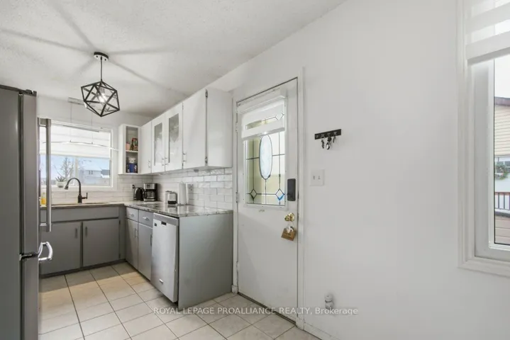 +"PublicRemarks": "This well-maintained 3 bedroom, 2 bath backsplit offers the perfect blend of comfort and functionality in a fantastic location. The spacious eat-in kitchen features beautiful quartz countertops, providing both style and durability, along with plenty of room for cooking and casual dining. Large windows fill the space with natural light, creating a bright and welcoming atmosphere. The inviting living room boasts a cozy gas fireplace, perfect for relaxing evenings at home. Upstairs, you'll find a primary bedroom complete with a 3-piece ensuite and balcony to the backyard, along with two additional bedrooms and a 4-piece main bathroom, ideal for families or guests. The lower level offers even more living space, including a large finished rec room that can easily serve as an entertainment area, home office, or kids' playroom. You'll also find a convenient laundry room and utility room on this level. Situated on a mature lot, the fully fenced backyard is ready for summer enjoyment with an above-ground pool and a large storage shed. A new heat pump (2024) adds modern efficiency and comfort. Ideally located just minutes to CFB Trenton, downtown Trenton, and Highway 401, this home offers both convenience and lifestyle. A wonderful opportunity in a sought-after area!"