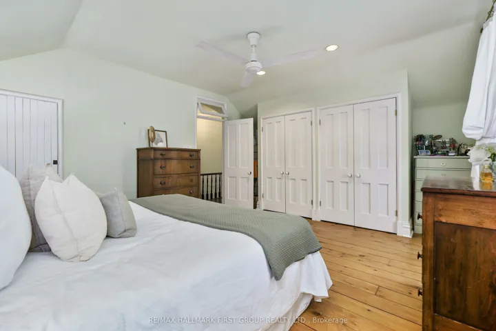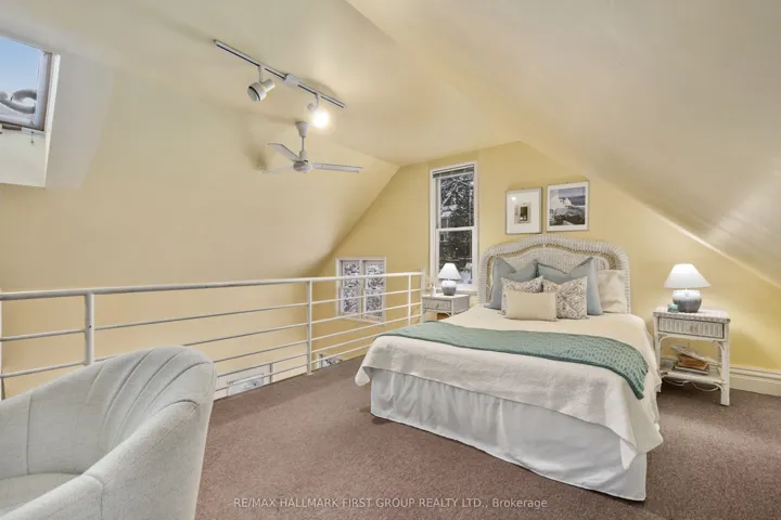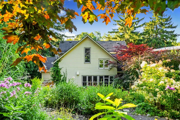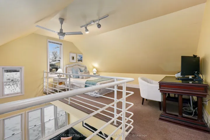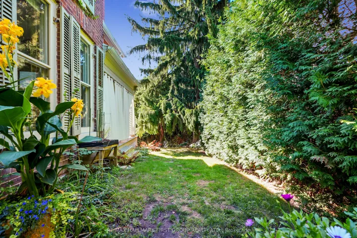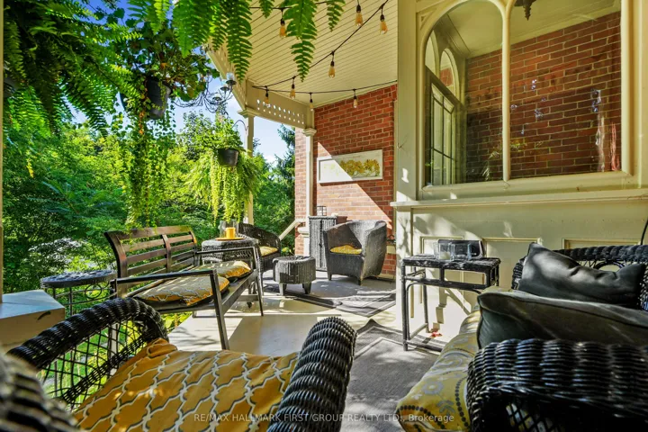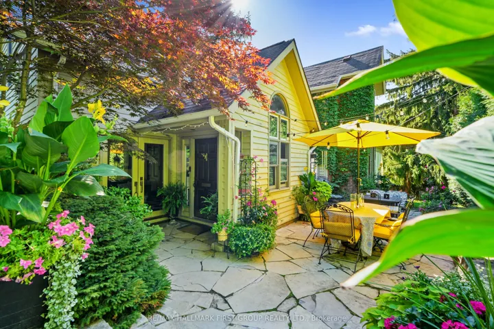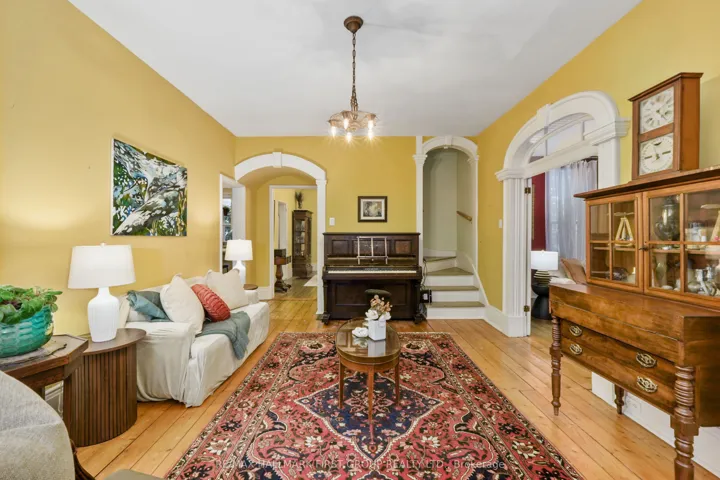 +"PublicRemarks": "Located on a picturesque, tree-lined street in the heart of Downtown Port Hope, this distinctive 1850s-built home blends timeless character with thoughtful modern updates. Guests are greeted by a beautiful open foyer featuring a striking floor design and large windows that flood the space with natural light. The living room impresses with a sun-soaked layout, a wall of windows, and a soaring two-storey ceiling. In contrast, the spacious dining room showcases detailed trim and high baseboards, an ideal setting for holiday gatherings and year-round entertaining. The kitchen is designed for hosting, offering generous cabinet and counter space, a coffee bar area, gas stove, breakfast bar, and a prep counter accented by pendant lighting. A character-filled sitting or music room connects to the family room through an elegant arched doorway. The cozy family room features an ornate decorative fireplace and floor-to-ceiling windows overlooking the gardens. A main-floor three-piece bathroom and a convenient laundry room complete this level. Upstairs, the primary bedroom offers a spacious retreat with dual closets featuring French doors, high ceilings, and recessed lighting. The bathroom includes skylights, a glass shower enclosure, and a relaxing soaker tub. Two well-appointed bedrooms and an open loft ideal for a home office or guest space complete the upper floor plan. Outside, a private secret garden oasis awaits. Enjoy a covered porch perfect for morning coffee in any weather, a back patio ideal for alfresco dining, and lush mature trees and gardens, all complemented by a charming bunkie. Situated moments from Trinity College School local amenities, downtown shops, and restaurants, this home offers the exceptional lifestyle Port Hope is known for, with easy access to the 401."