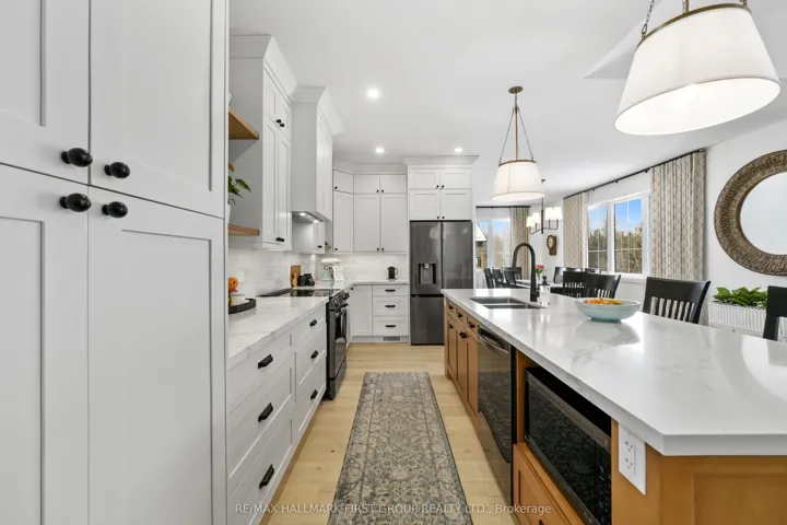 +"PublicRemarks": "Newly constructed luxury residence set within the sought-after hamlet of Grafton, showcasing elevated finishes throughout a generous private lot. Refined main-level living spans 2,052 square feet, complemented by an impressive 824-square-foot garage providing parking for three vehicles. A dramatic two-storey entry features striking contemporary lighting, creating a memorable first impression. The open principal living space offers an inviting area with a stone-clad fireplace feature wall, a soaring cathedral ceiling, and a walkout that extends everyday living outdoors. The dining area is framed by expansive windows, providing ample room for entertaining. The kitchen delivers modern elegance with ceiling height cabinetry finished with crown moulding detail, an oversized island with breakfast bar, statement pendant lighting, coordinated appliances, open shelving, plus sleek, timeless backsplash surfaces with refined countertops. The primary bedroom offers a serene retreat with a spa-inspired ensuite featuring a double vanity, glass shower enclosure, separate soaker tub, private water closet, and spacious walk-in closet. Two additional well-appointed bedrooms, a full bathroom, and convenient main-floor laundry complete the level. The fully finished lower level expands the living experience with a large recreation room ideal for games or relaxation, a dedicated office, two bright bedrooms, a stylish bathroom with glass shower enclosure, plus abundant storage. Outdoor living is elevated by a carefree Trex deck with glass railing that captures uninterrupted views across mature trees plus open greenspace, creating an ideal country setting paired with upscale comfort. Proximity to everyday amenities, minutes from the world-renowned Ste. Anne's Spa, plus quick access to Highway 401, completes this exceptional offering."