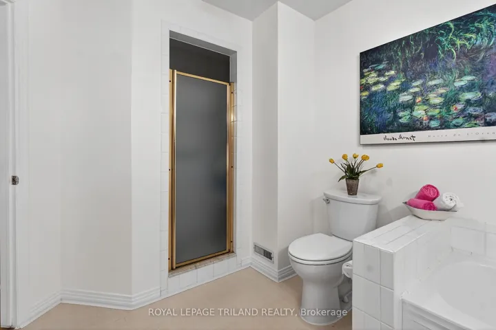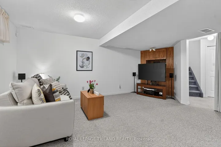+"PublicRemarks": "Welcome to this beautifully updated two-storey townhouse tucked away on a quiet cul-de-sac in the heart of Northridge. Surrounded by mature trees and exceptional privacy, this home offers direct access to a scenic 5.2 km trail system along the Thames River-perfect for walking, running, or cycling. The bright, south-facing entryway opens into a warm and inviting living room highlighted by a contemporary gas fireplace. The renovated kitchen (2023) features sleek cabinetry, quartz countertops, a glass tile backsplash, and stainless steel appliances, with the adjoining dinette leading to a private L shaped deck nestled among the trees. As a middle unit, this home benefits from natural shade and improved insulation, helping maintain comfortable temperatures and reducing energy costs. The second floor includes a spacious primary bedroom with a generous walk-in closet, along with two additional well-sized bedrooms. The finished basement adds even more versatility with a recreation room complete with built-in TV and speakers, a full four-piece bathroom, a dedicated laundry room, and ample storage. This well-managed community provides low-maintenance living with landscaping, snow removal, and grass cutting included. Recent improvements-new A/C (2021), luxury vinyl plank flooring throughout the second level (2024), new washer and dryer (2024), duct cleaning (2024), and fresh paint (2024) - ensure a move-in-ready experience. Ideally located in everyday amenities and top-rated schools, this home offers the perfect balance of convenience, comfort, and natural surroundings."