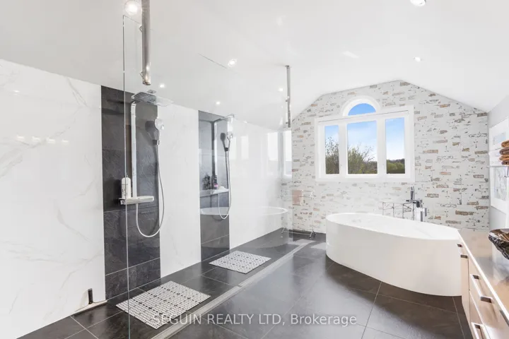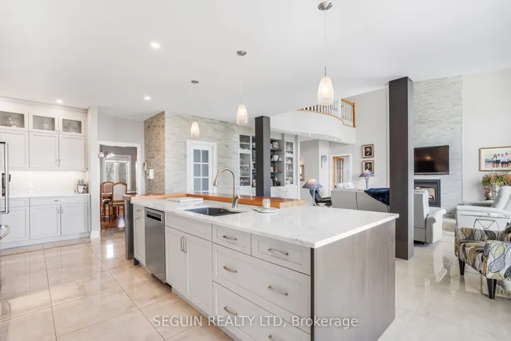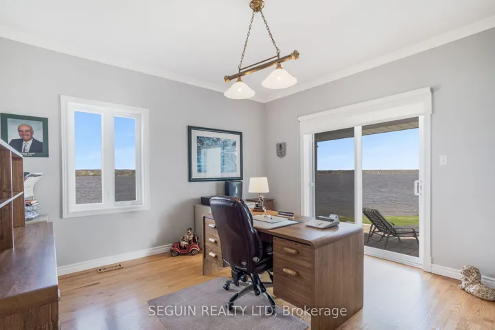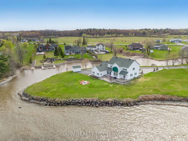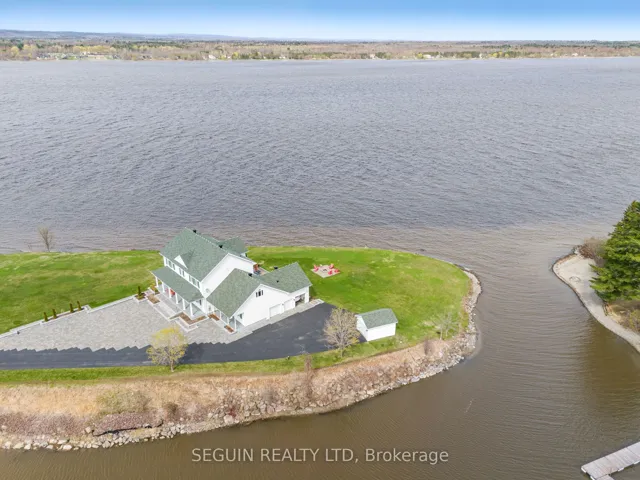 +"PublicRemarks": "IMMEDIATE POSSESSION AVAILABLE! A once-in-a-generation opportunity to own one of the most exceptional waterfront properties in the area. Set on a breathtaking 1.93-acre private peninsula with over 360 feet of pristine shoreline along the majestic Ottawa River, this rare estate offers unmatched privacy, panoramic water views, and an extraordinary lifestyle. Designed with elegance and intention, the home features 9-foot ceilings throughout and a spectacular 19-foot cathedral ceiling in the grand family room. Expansive floor-to-ceiling windows frame the river like artwork, while a striking double-sided fireplace adds warmth and architectural presence. The open-concept chef's kitchen is the heart of the home, showcasing an oversized island and premium appliances - ideal for both everyday living and upscale entertaining. Two spacious living rooms provide flexibility for formal gatherings or relaxed family time. A dedicated home office overlooking the water creates the ultimate work-from-home sanctuary. The main floor also includes a powder room, a separate laundry room, and direct access to a triple-car garage with private entry to the fully finished basement. Upstairs, the luxurious primary suite offers a spa-inspired ensuite with radiant heated floors, a fireplace, and an expansive walk-in closet. Two additional well-appointed bedrooms and a stylish full bathroom complete the upper level. Outdoors, professionally landscaped grounds and a full sprinkler system maintain the lush setting with ease. A secluded private bay offers protected docking and effortless boating access - a rare feature along this stretch of the river. This is more than a home; it's a legacy property, a private retreat, and a true showcase of refined waterfront living."
