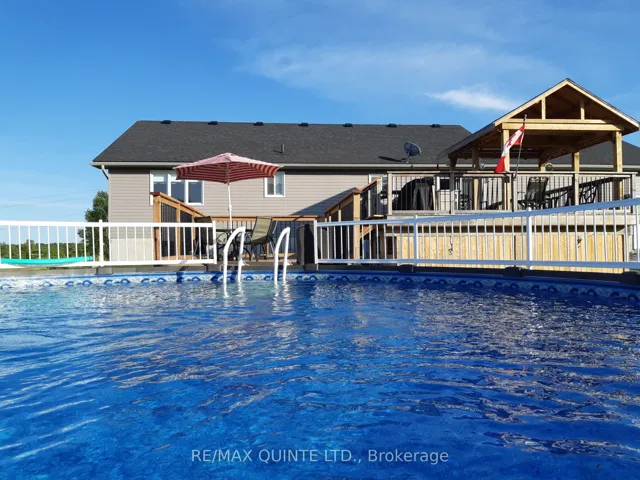 +"PublicRemarks": "Experience the perfect blend of modern luxury and rural serenity in this stunning 2014-built bungalow, situated on just under 6 sprawling acres only 8 km from the heart of Picton. The open-concept main floor features a chef-inspired kitchen with sleek quartz countertops and a layout designed for effortless entertaining. This level offers three spacious bedrooms and two full bathrooms, highlighted by a sophisticated primary suite featuring a large vanity, custom walk-in tiled shower, and a heated towel rack for a truly curated spa-like experience. Providing ultimate peace of mind for country living, the home is equipped with a Generac backup generator system that services half the house, ensuring essential power and comfort regardless of the weather. The fully finished lower level provides even more versatile living space, including a convenient half-bath and the potential for a fourth bedroom or home office. Step outside to your private outdoor oasis, where multiple tiers of custom decking seamlessly integrate with a refreshing saltwater above-ground pool. This expansive backyard setup is the ultimate venue for entertaining, offering an elevated platform for large summer gatherings or quiet evenings overlooking your massive acreage in total privacy. Combining modern efficiency with the peace and quiet of the County, this move-in-ready property is the ultimate retreat."